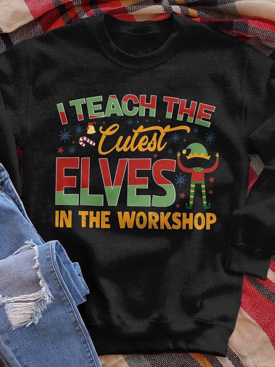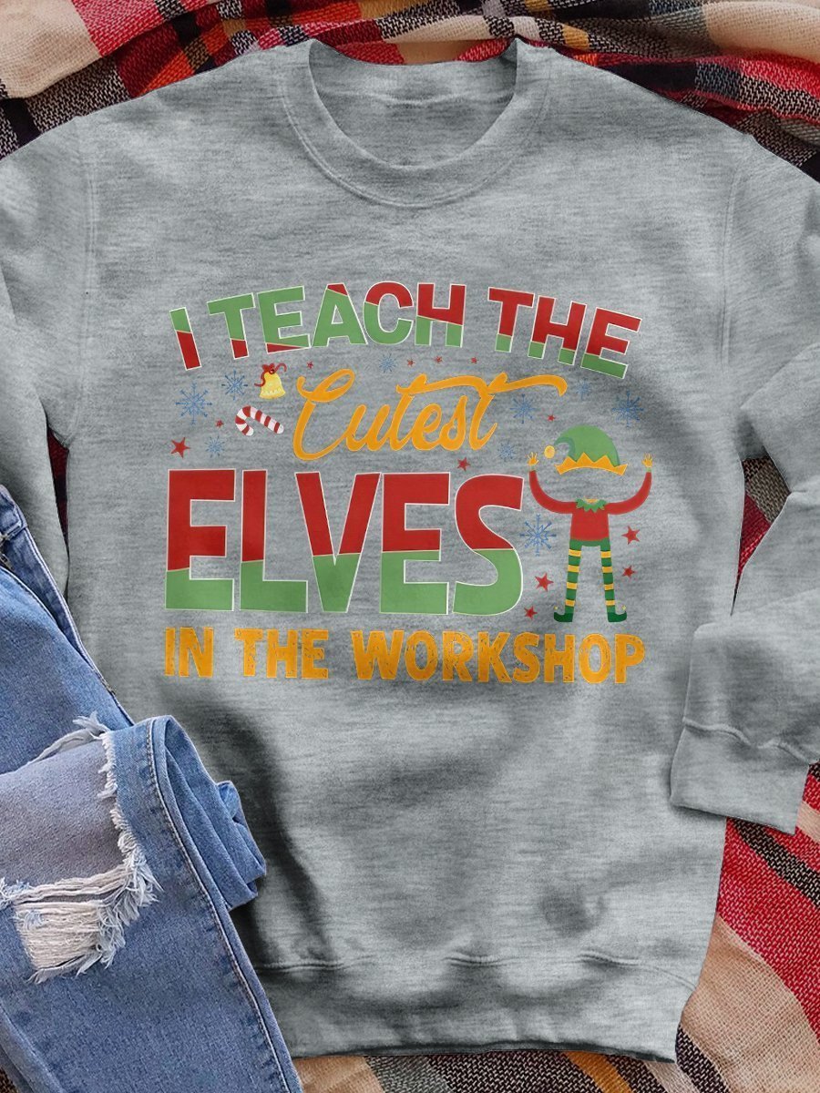I Teach The Cutest Elves Print Long Sleeve Sweatshirt