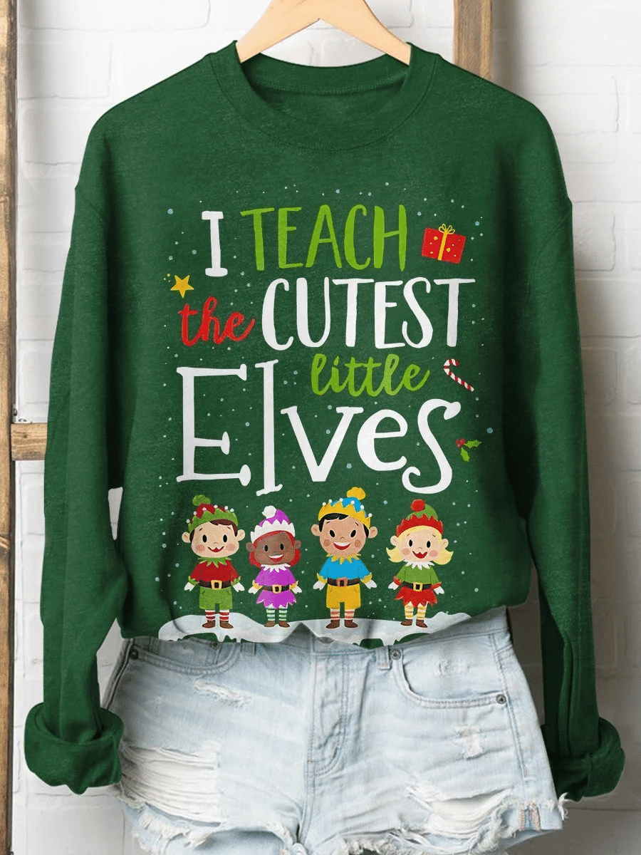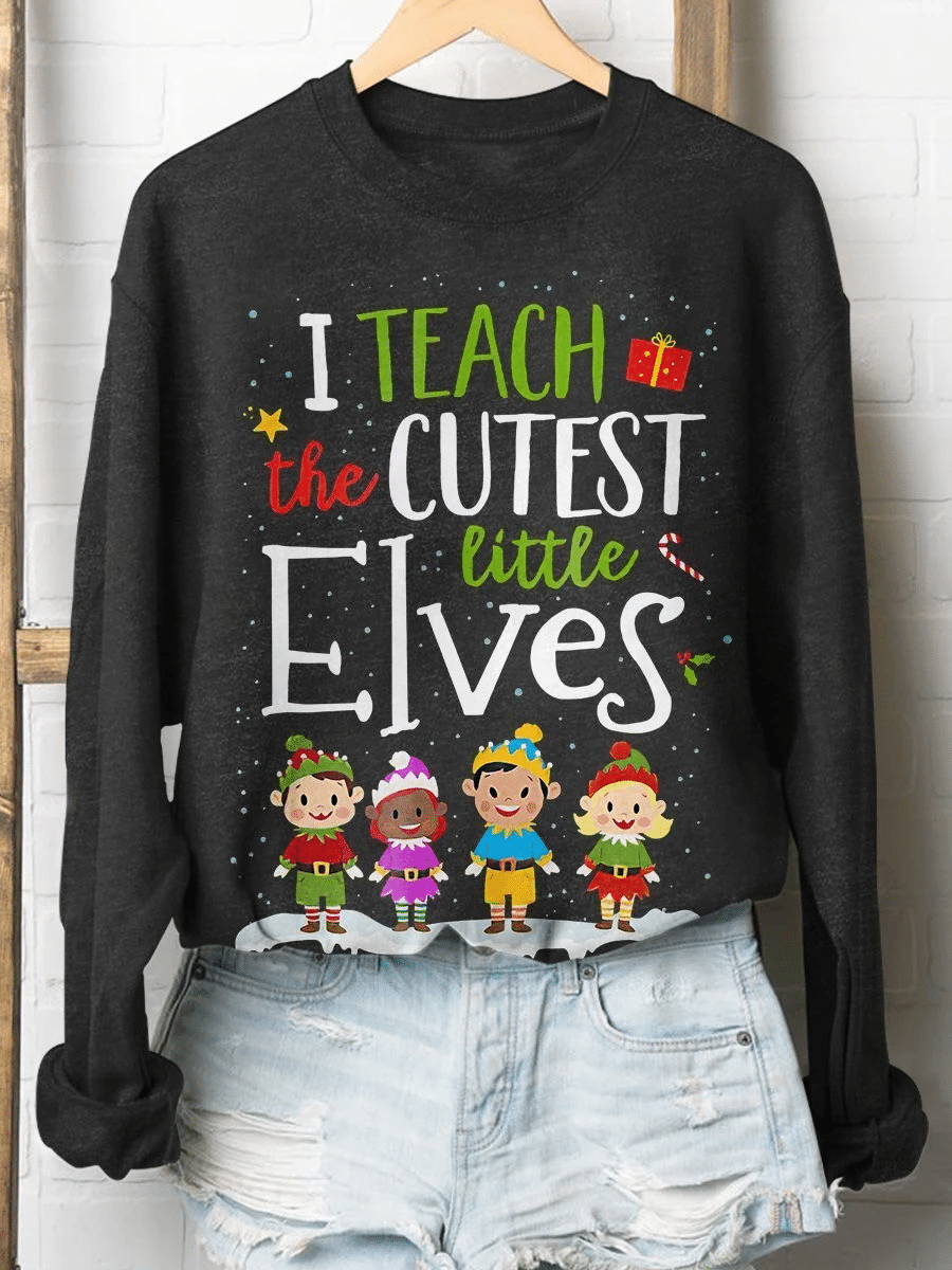 I Teach The Cutest Little Elves Print Long Sleeve Sweatshirt