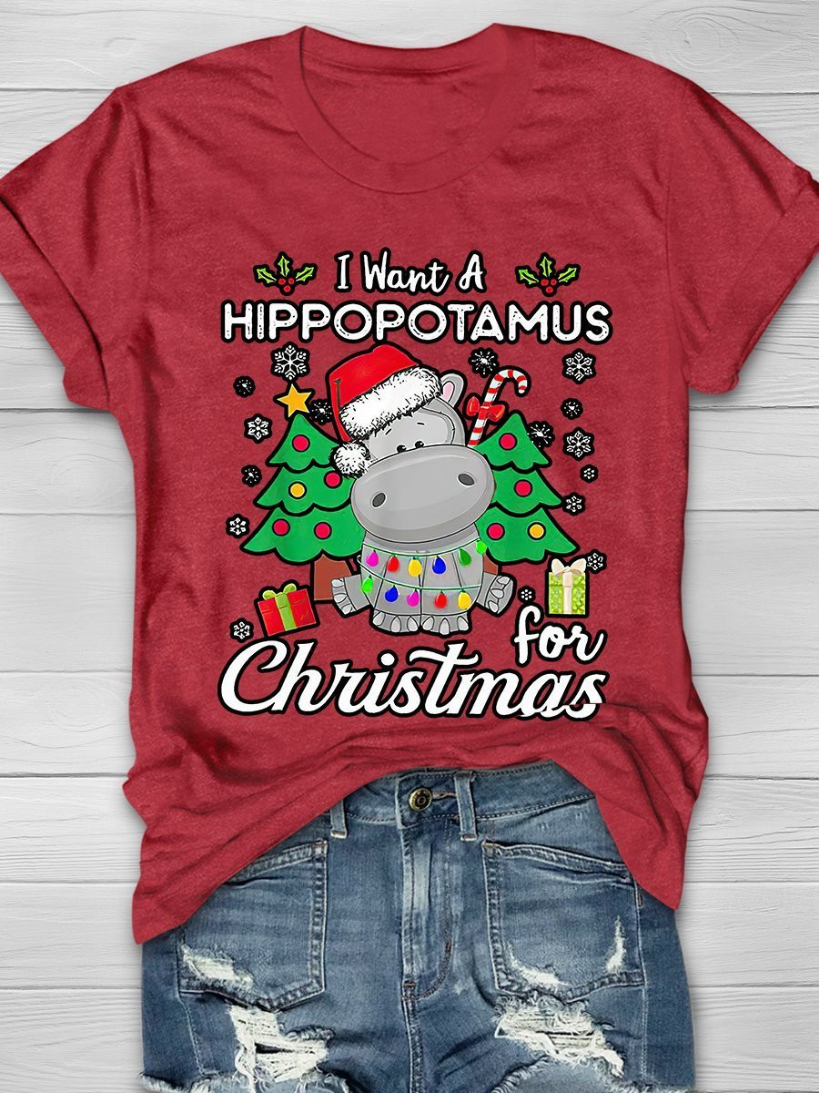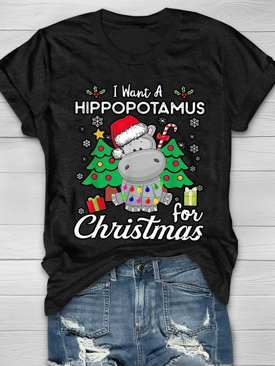 I Want A Hippopotamus For Christmas Print Short Sleeve T-Shirt