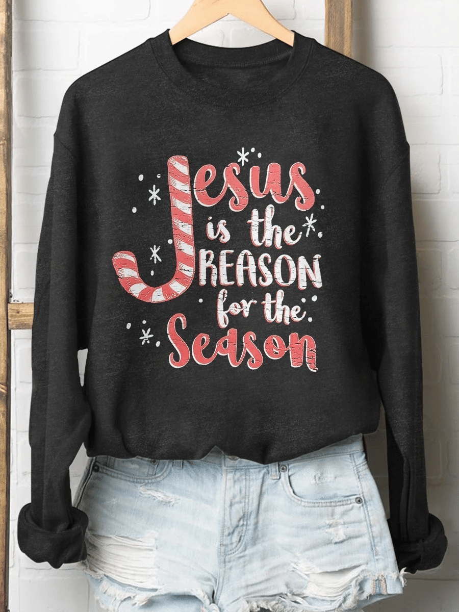 Jesus Is The Reason For The Season Print Long Sleeve Sweatshirt