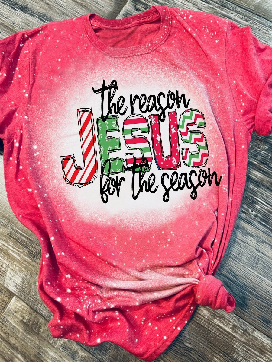 Jesus The Season For The Reason Bleached Print Short Sleeve T-Shirt