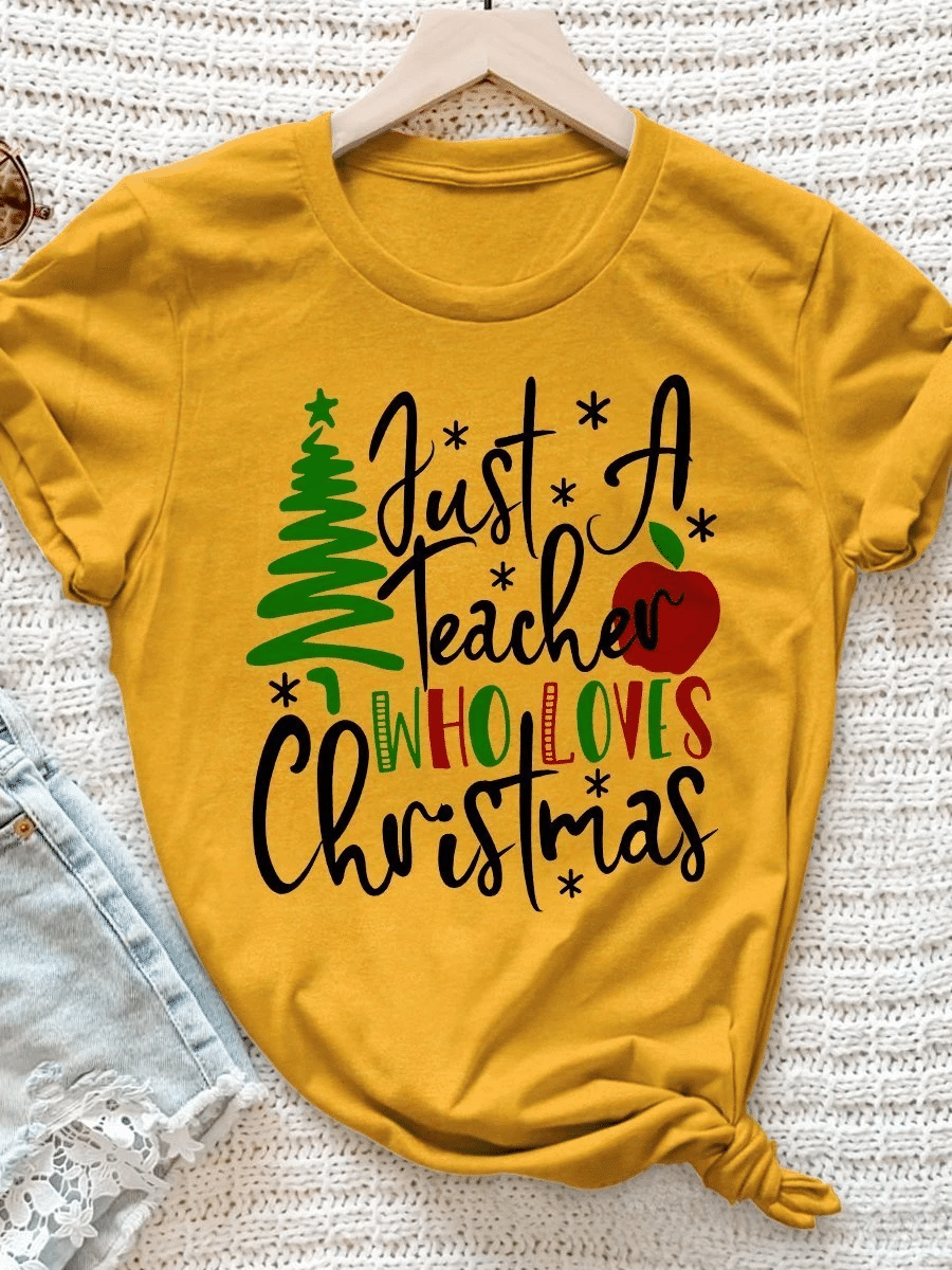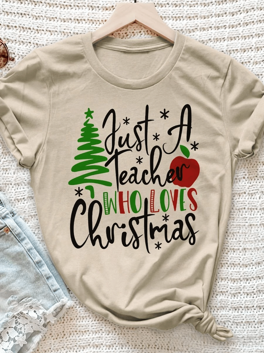 Just A Teacher Who Love Christmas Print Short Sleeve T-Shirt