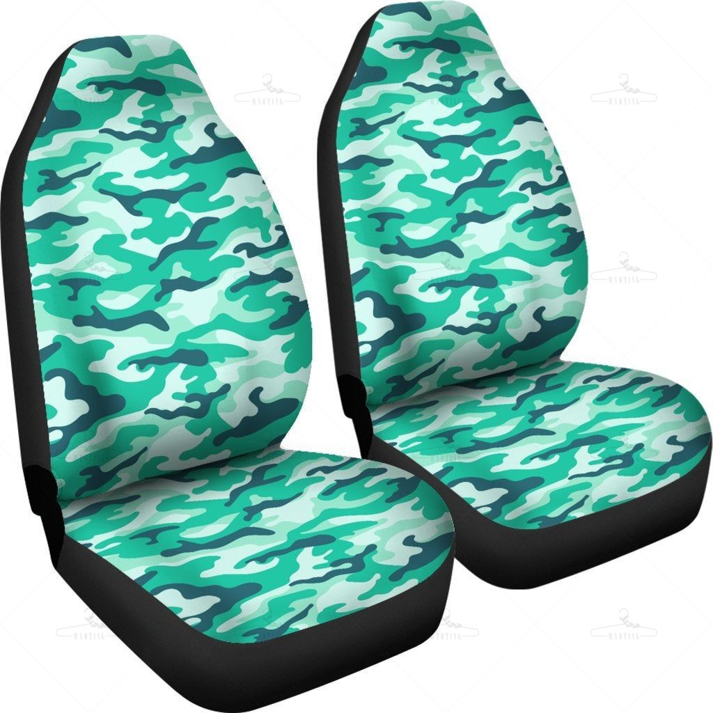 Light Green Teal Camouflage Car Seat Covers Pair, 2 Front Car Seat Covers, Seat Cover For Car, Car Seat Protector, Car Accessory