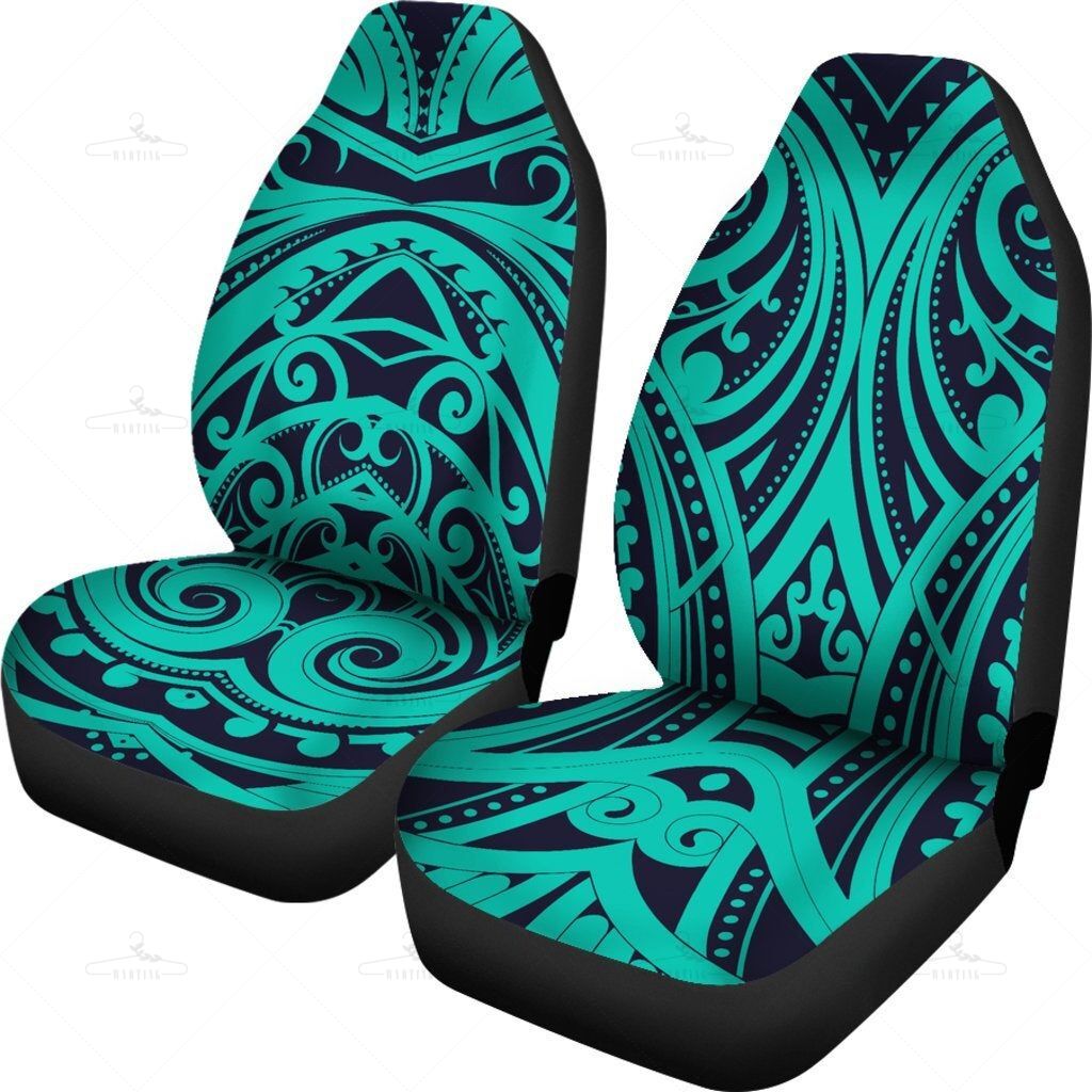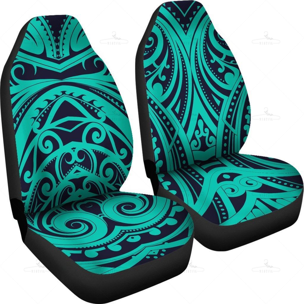 Light Green Teal Polynesian Tribal Car Seat Covers Pair, 2 Front Car Seat Covers, Seat Cover For Car, Car Seat Protector, Car Accessory