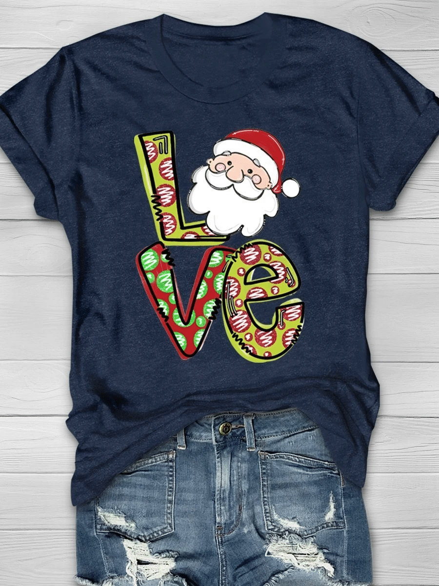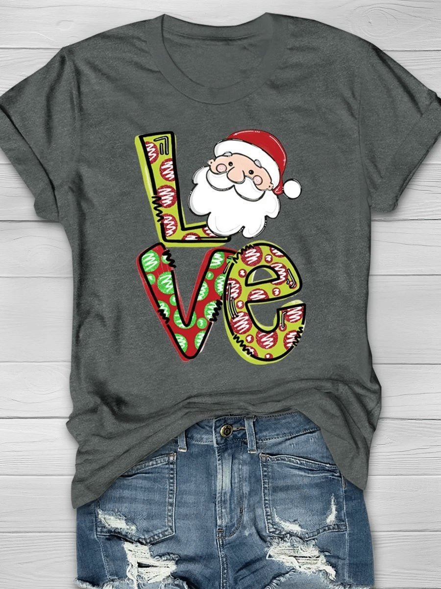 Love Christmas Santa Print Short Sleeve T-Shirt