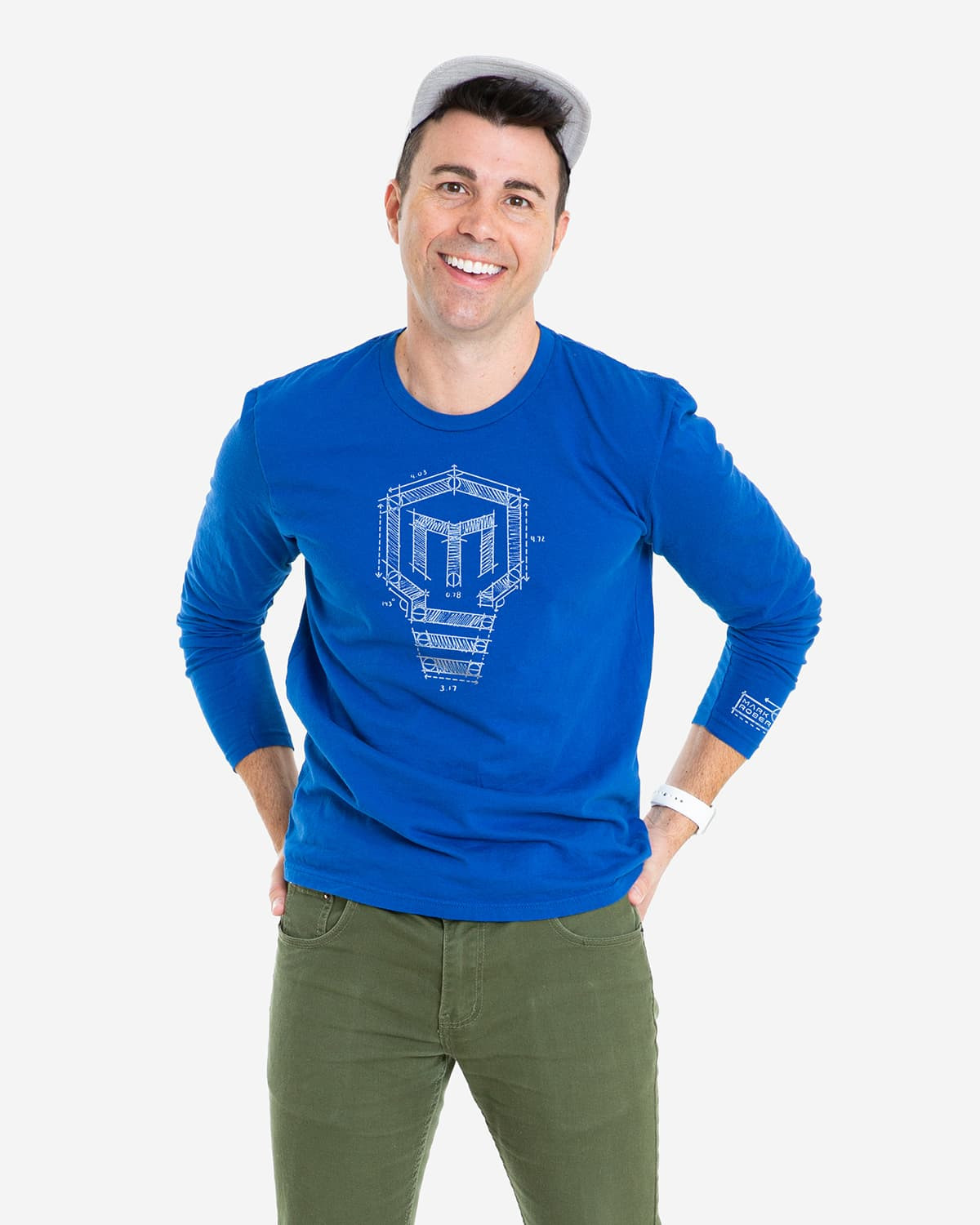 Mark Rober Merch Logo Blueprint Long Sleeve Tee (Blue)