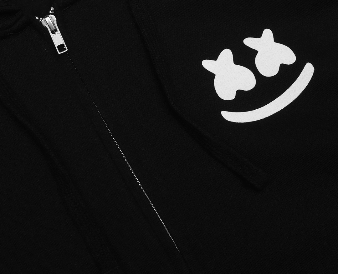 Marshmello Merch Smile Crest Zip-Up Hoodie — Black