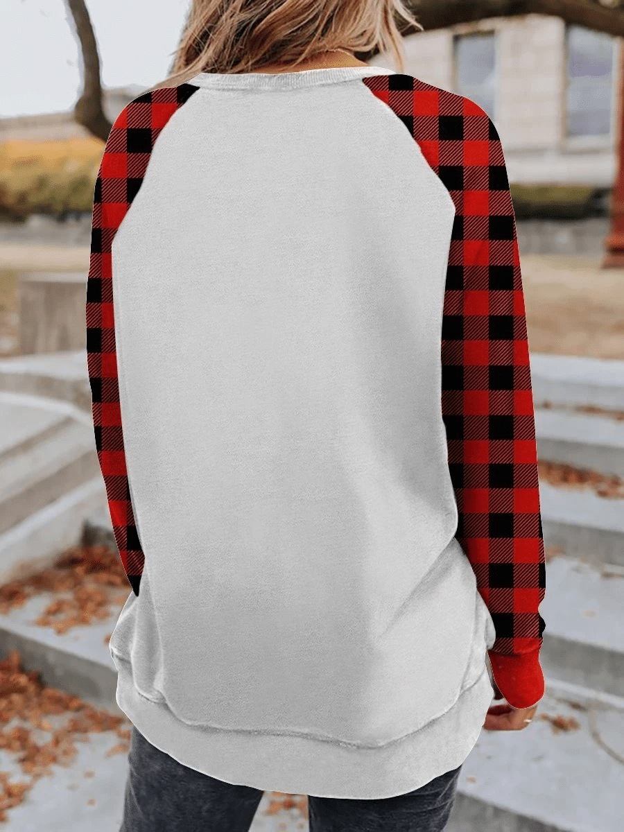 Merry Christmas Buffalo Plaid Elk Print Long Sleeve Sweatshirt