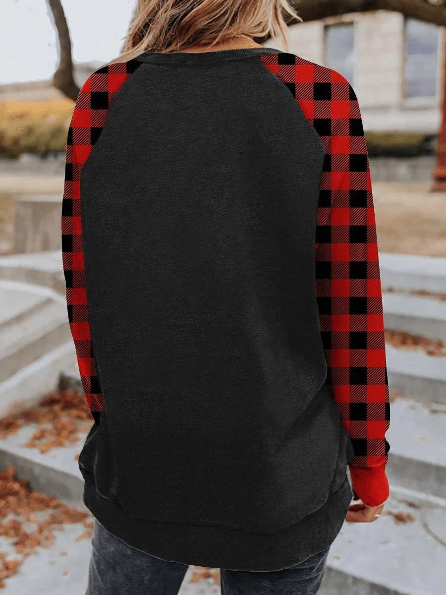 Merry Christmas Buffalo Plaid Print Long Sleeve Sweatshirt