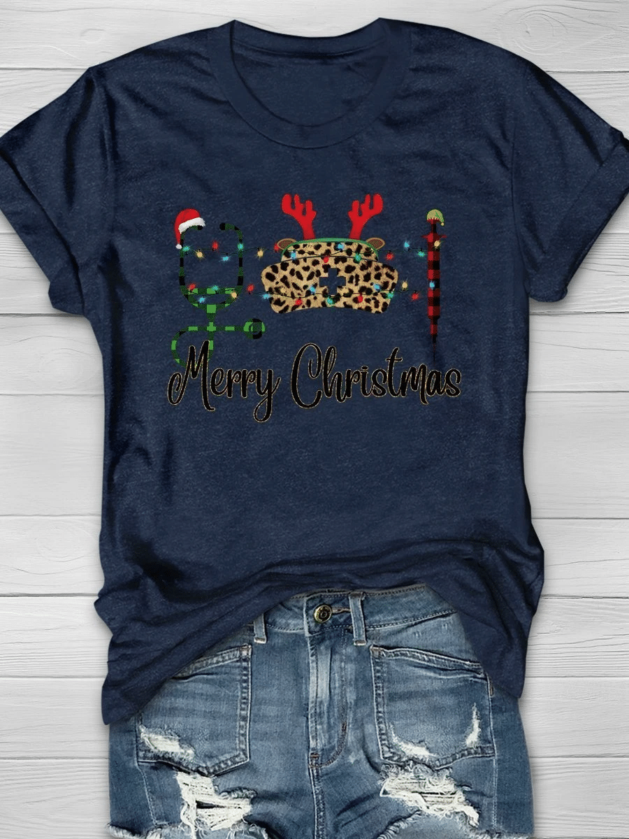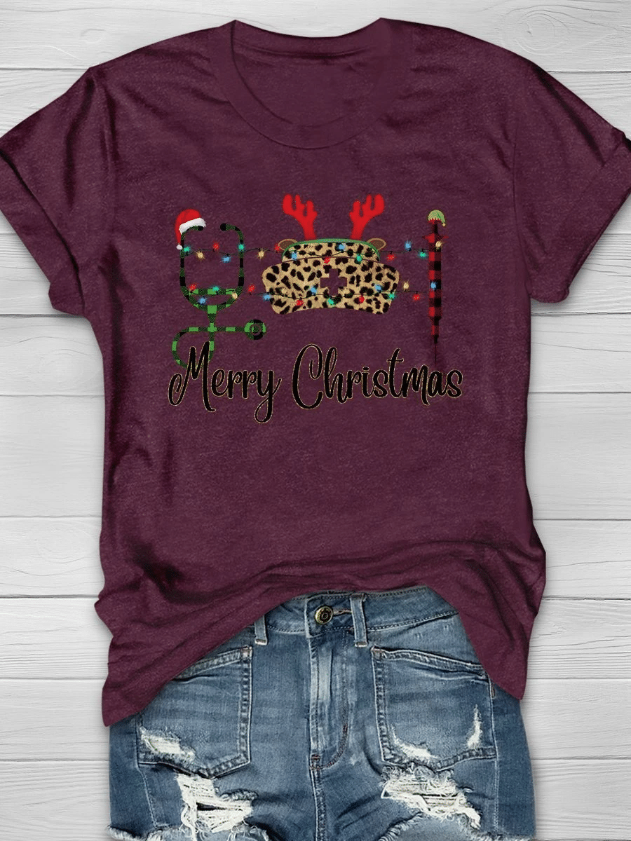 Merry Christmas Nurse Print Short Sleeve T-Shirt