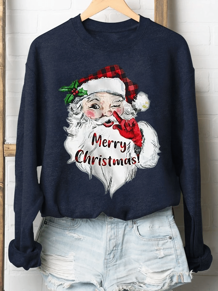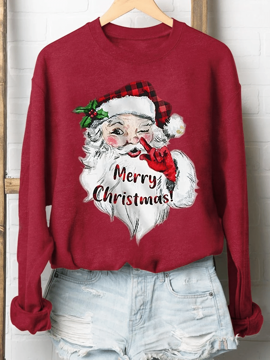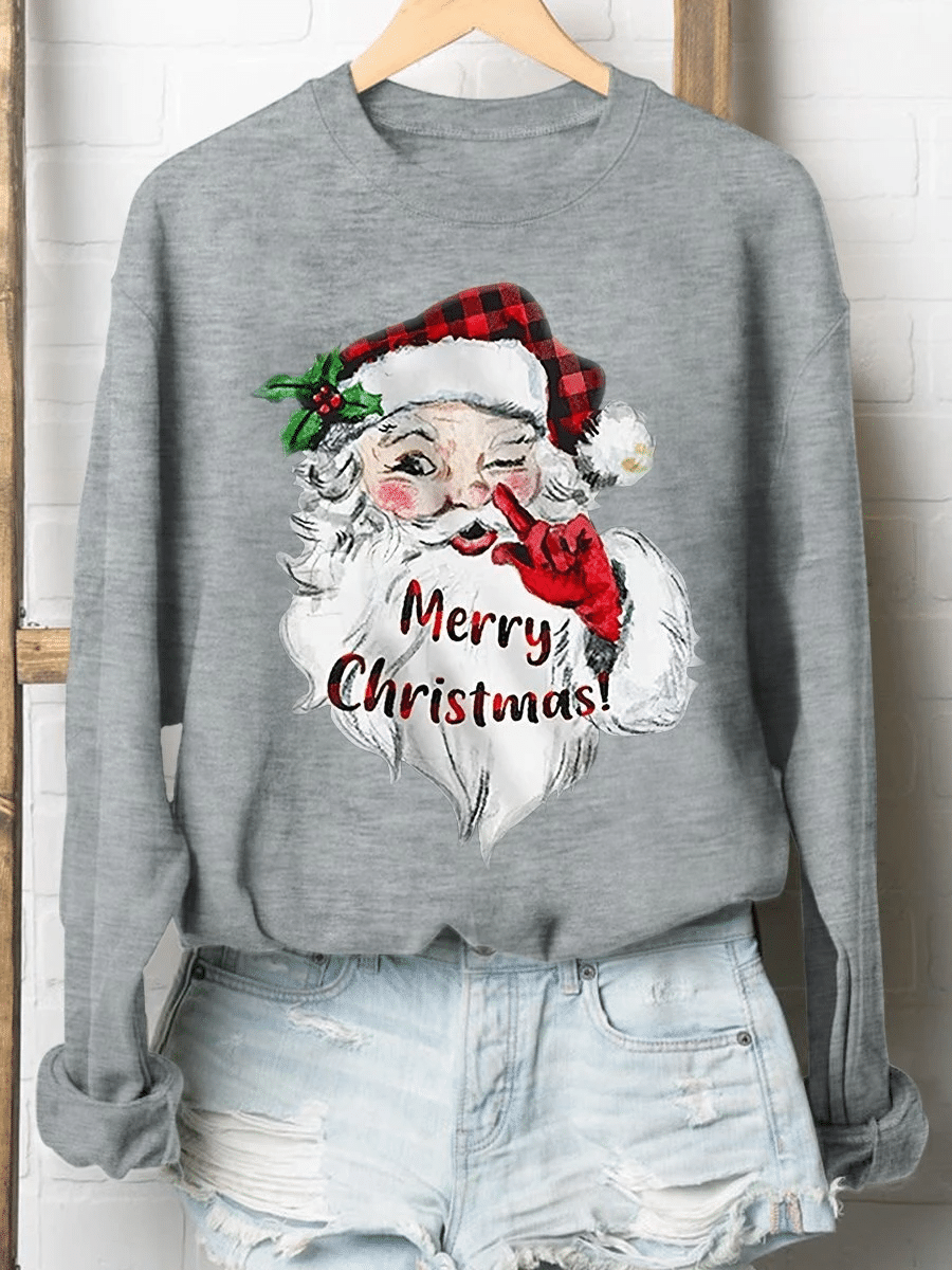 Merry Christmas Santa Print Long Sleeve Sweatshirt
