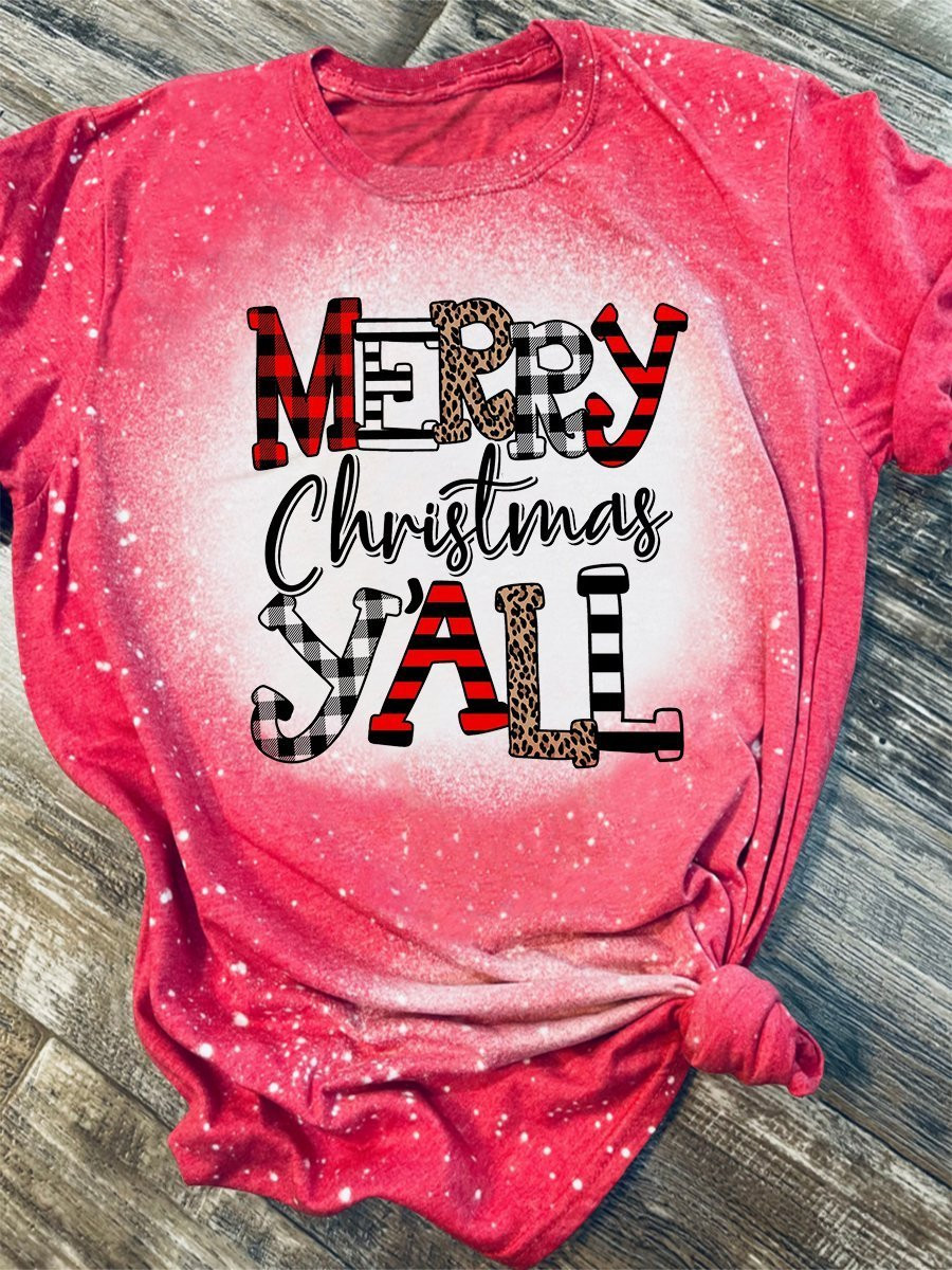 Merry Christmas Yall Print Short Sleeve T-Shirt
