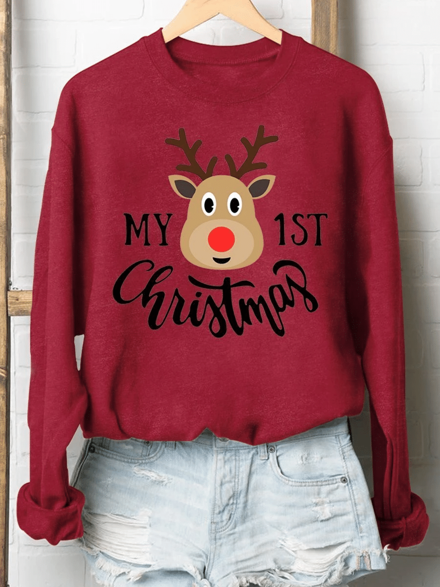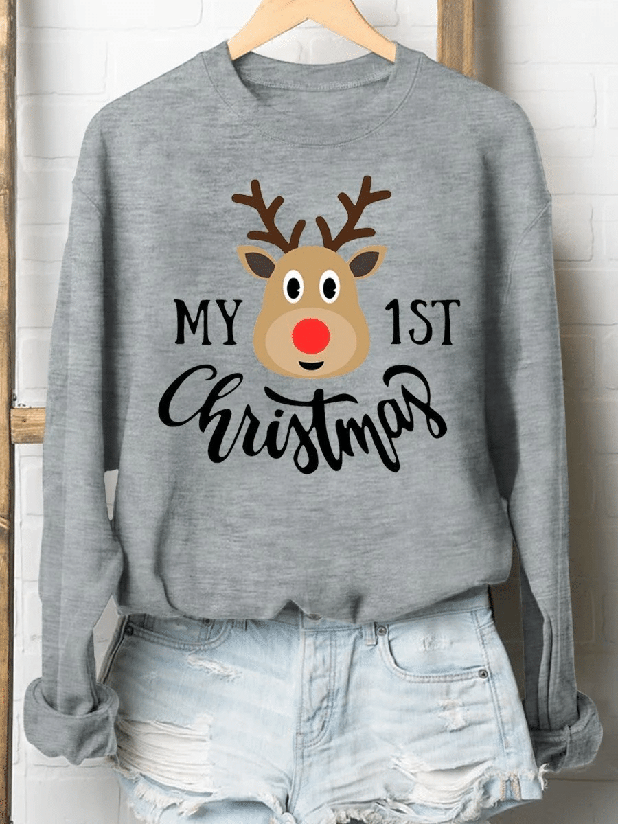 My First Christmas Elk Print Long Sleeve Sweatshirt