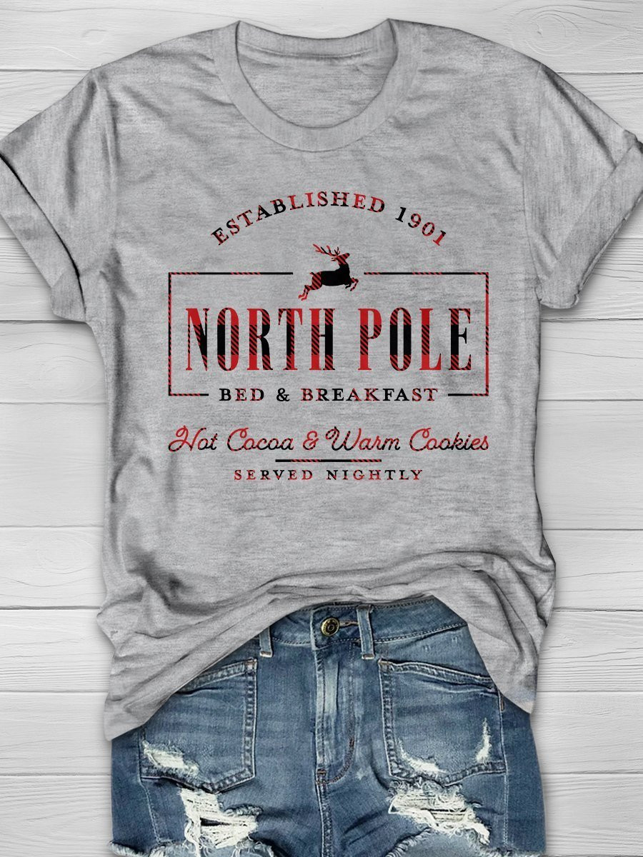 North Pole Served Nightly Christmas Print Short Sleeve T-Shirt