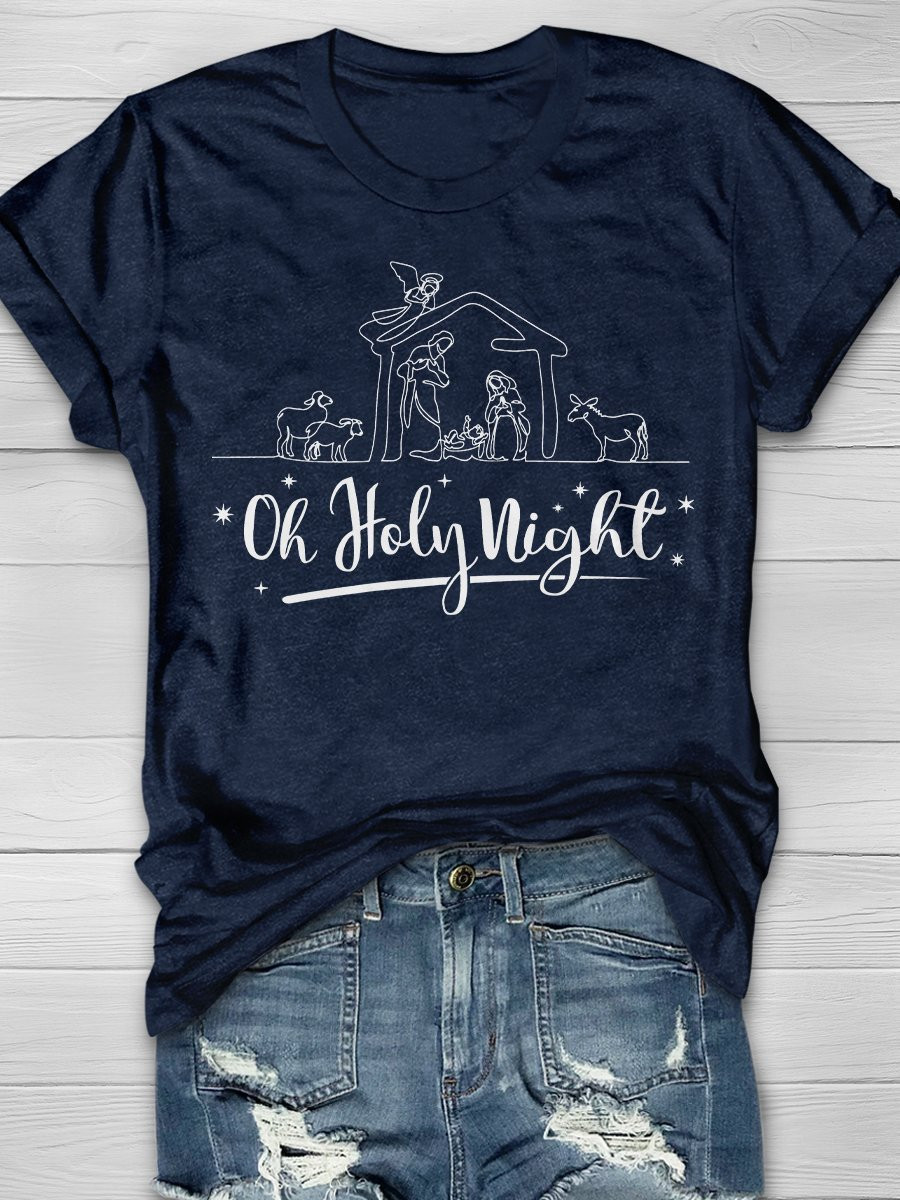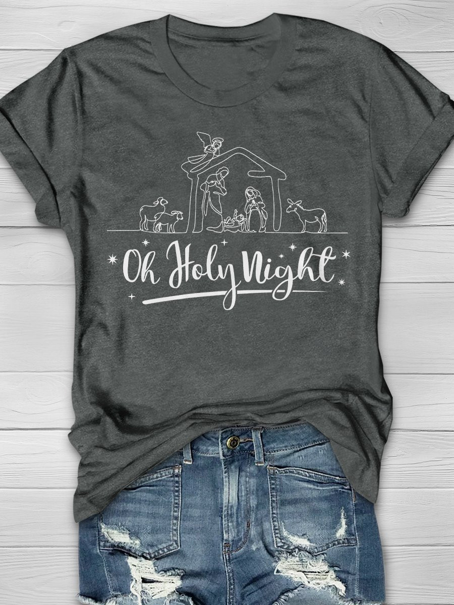 Oh Holy Night Print Short Sleeve T-Shirt