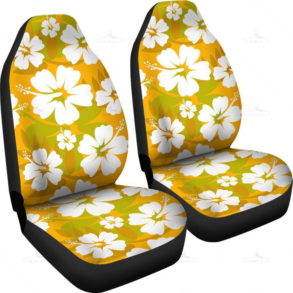 Orange Aloha Flowers Car Seat Covers Pair, 2 Front Car Seat Covers, Seat Cover For Car, Car Seat Protector, Car Accessory, Floral, Flowers
