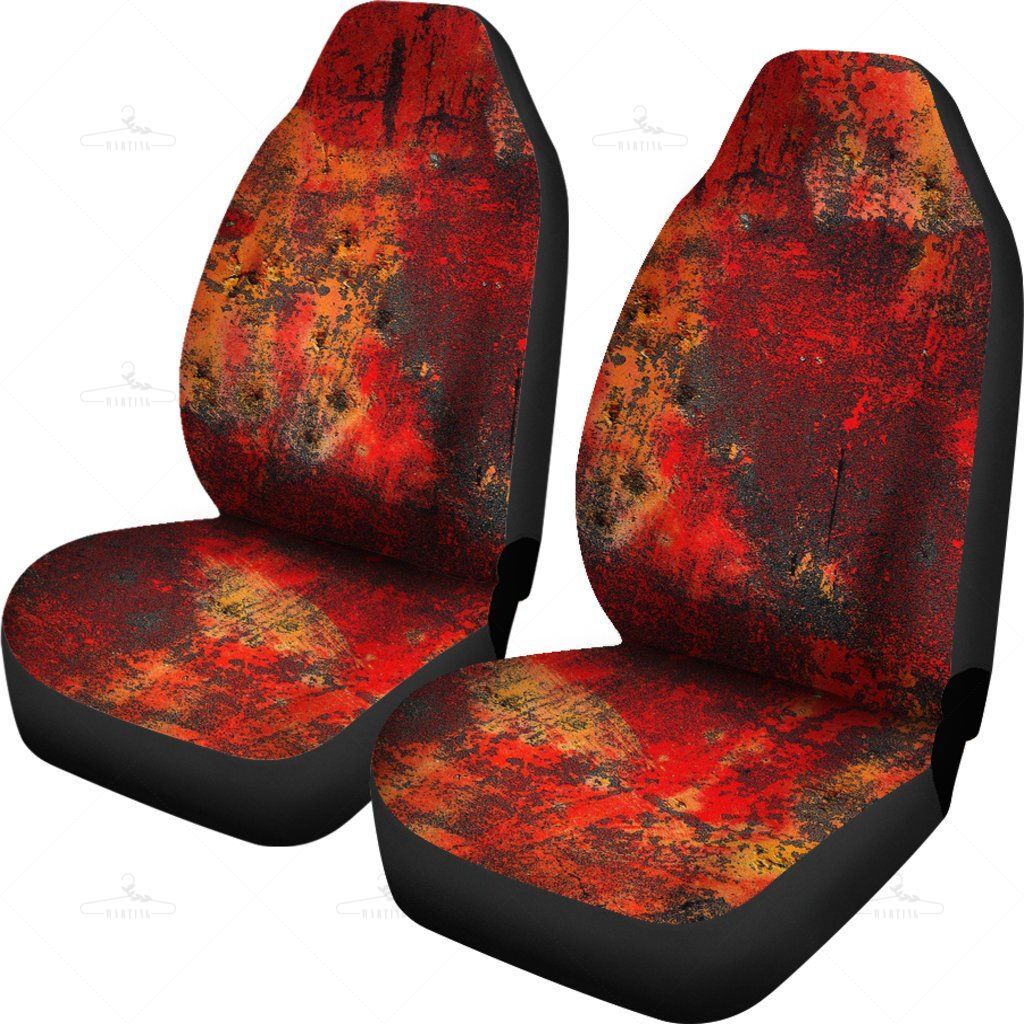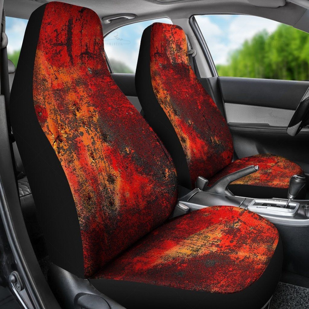 Orange Red Abstract Grunge Car Seat Covers Pair, 2 Front Car Seat Covers, Seat Cover For Car, Car Seat Protector, Car Accessory