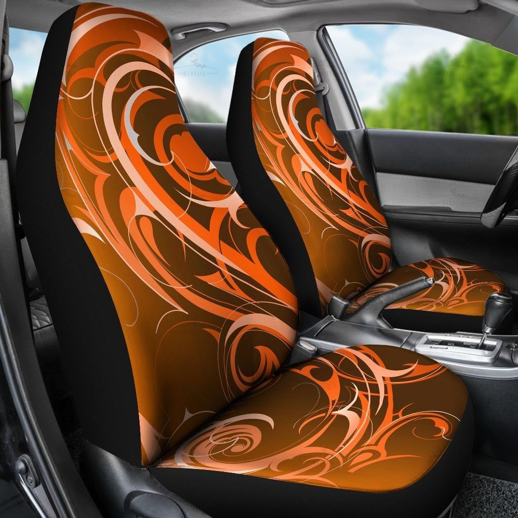 Orange Tribal Abstract Swirls Print Car Seat Covers Pair, 2 Front Seat Covers, Car Seat Covers, Car Seat Protector, Car Accessory