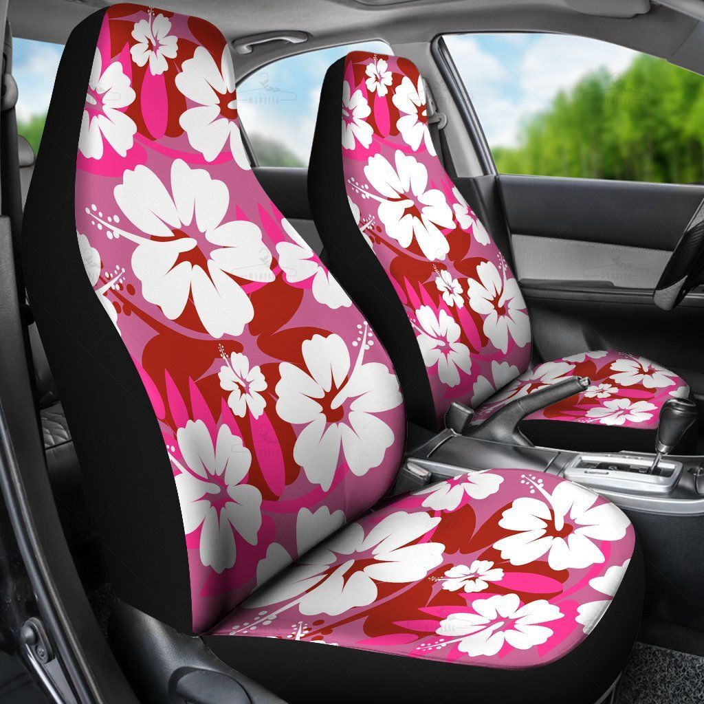 Pink Aloha Flowers Car Seat Covers Pair, 2 Front Car Seat Covers, Seat Cover For Car, Car Seat Protector, Car Accessory, Floral, Flowers