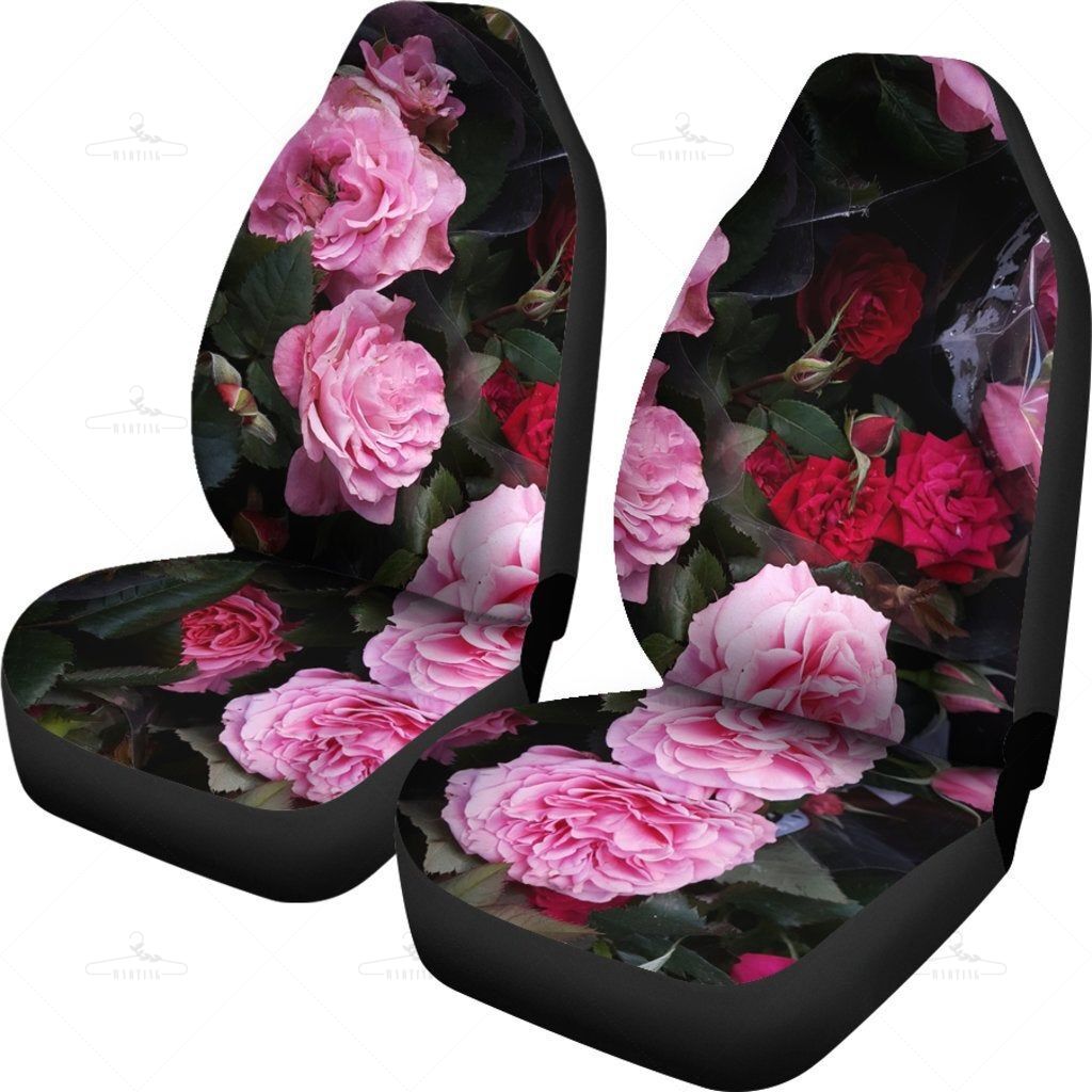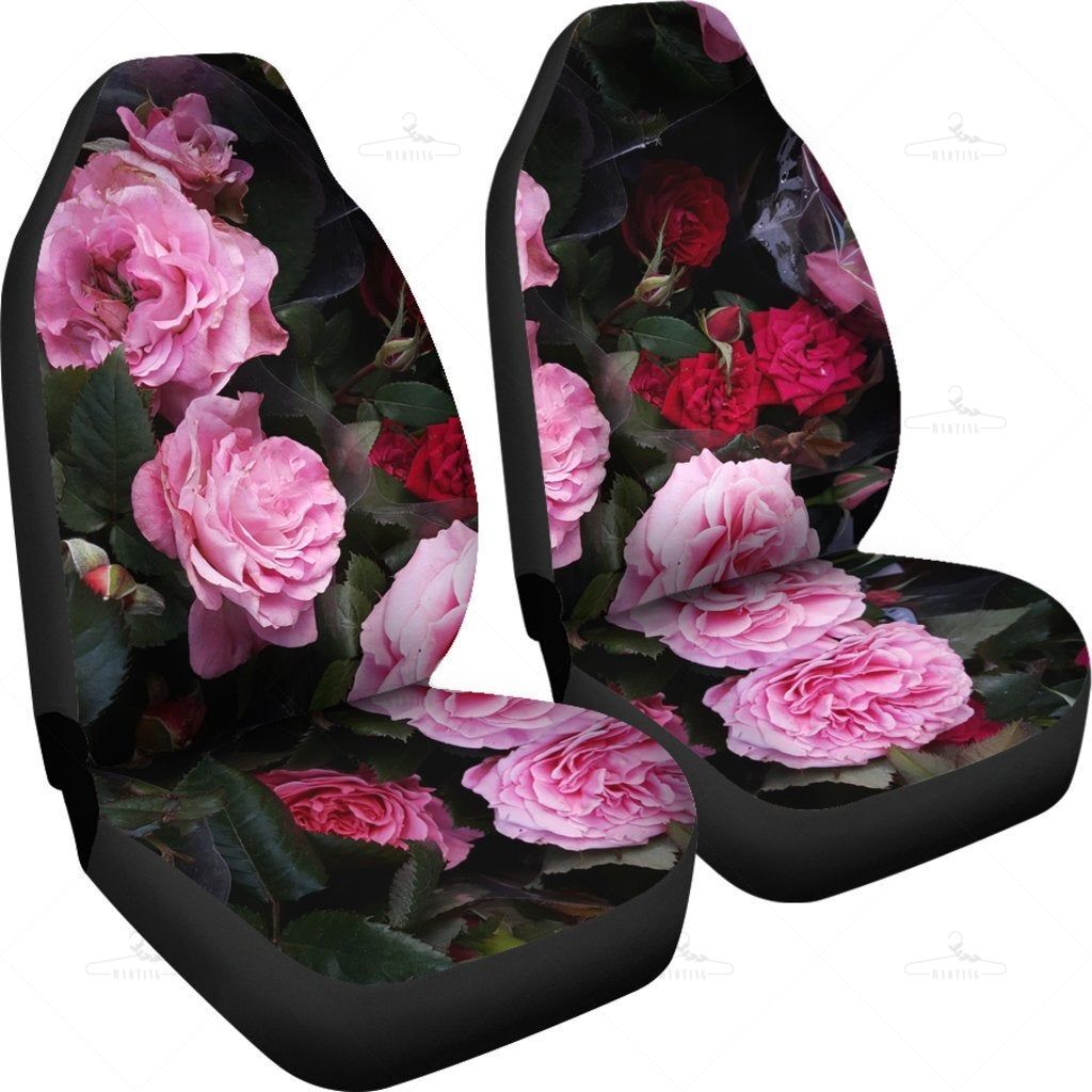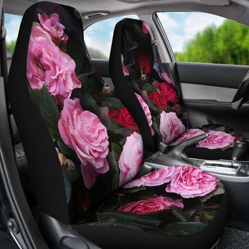 Pink Red Roses Floral Flowers Black Car Seat Covers Pair, 2 Front Car Seat Covers, Seat Cover For Car, Car Seat Protector, Car Accessory