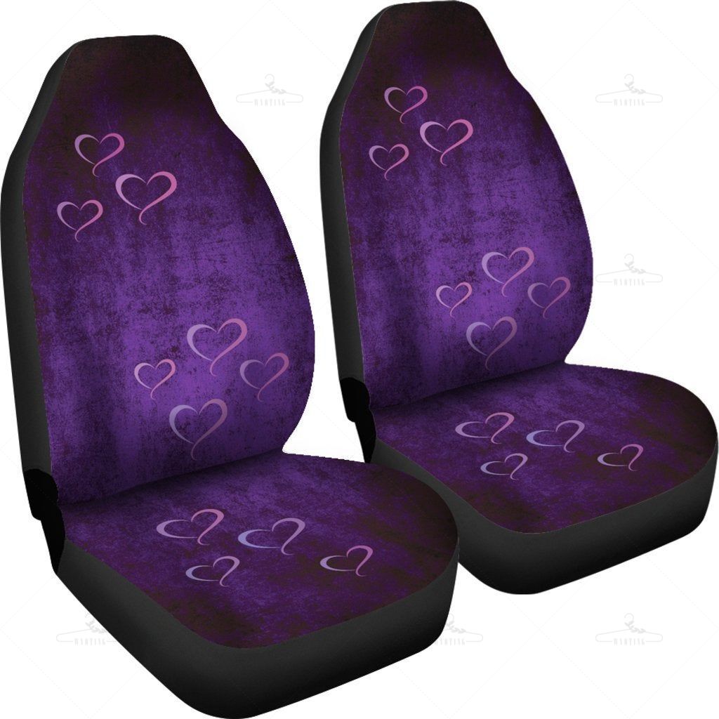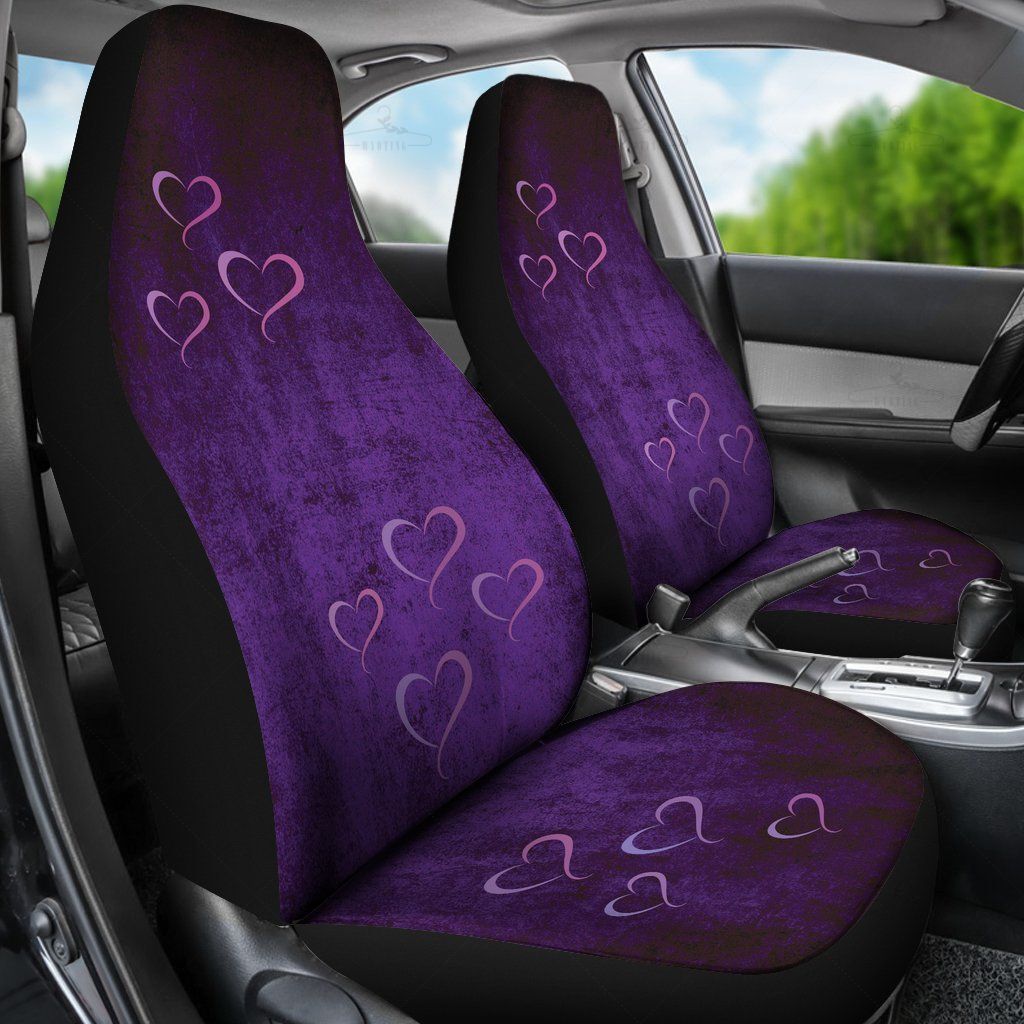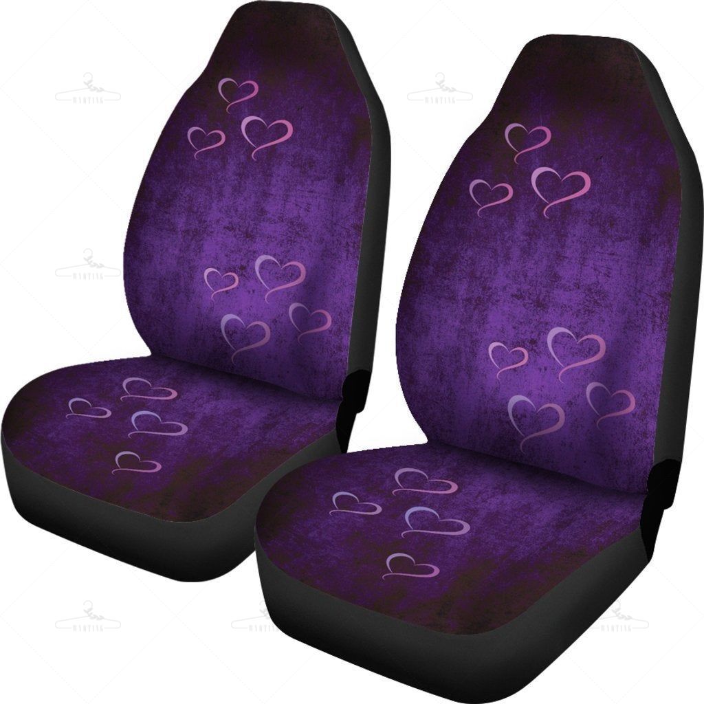 Purple Hearts Grunge Car Seat Covers Pair, 2 Front Seat Covers, Seat Cover For Car, Car Seat Protector, Car Accessory