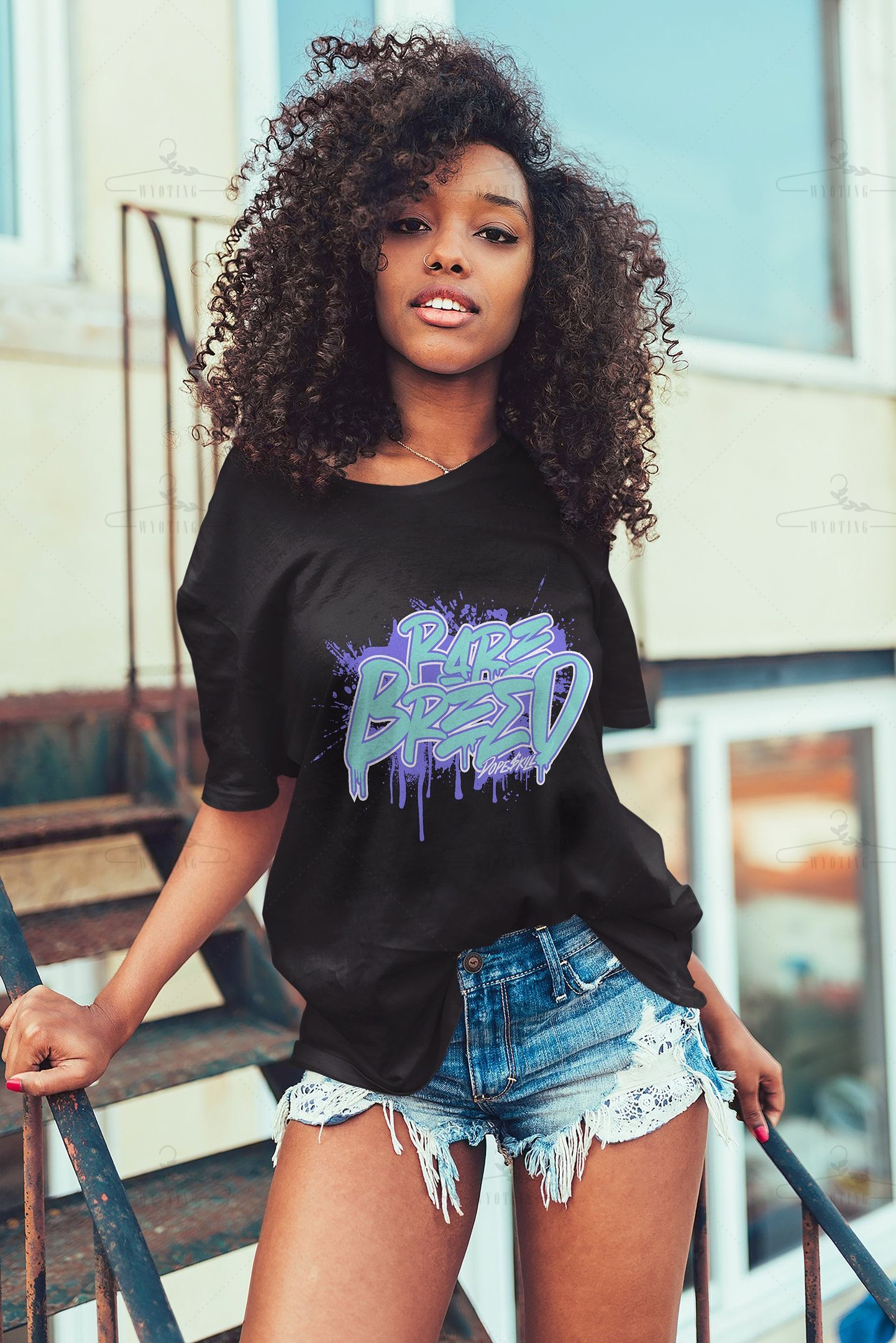 R.B Unisex Shirt Match Jordan 1 Mid Pairs Soft Purple And Aqua Blue