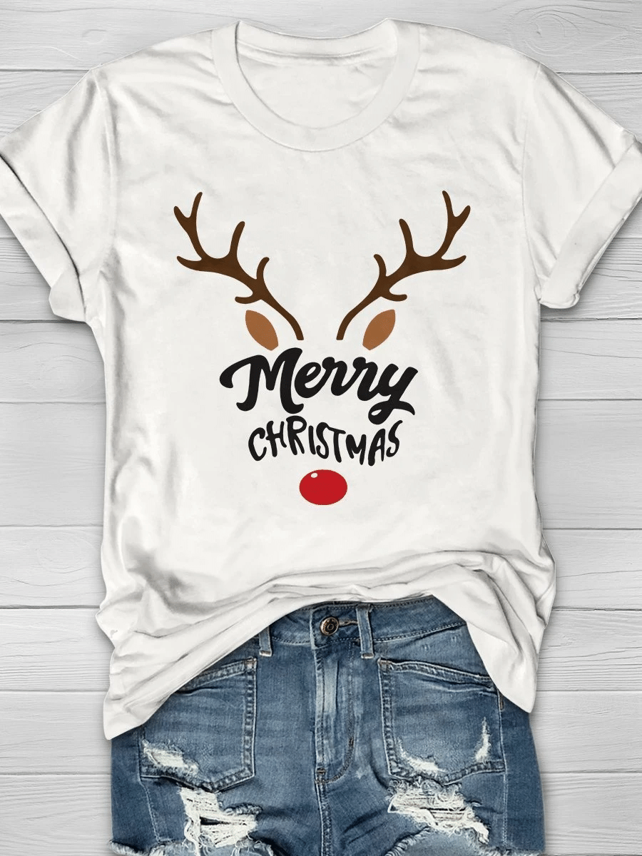 Reindeer Christmas Print Short Sleeve T-Shirt