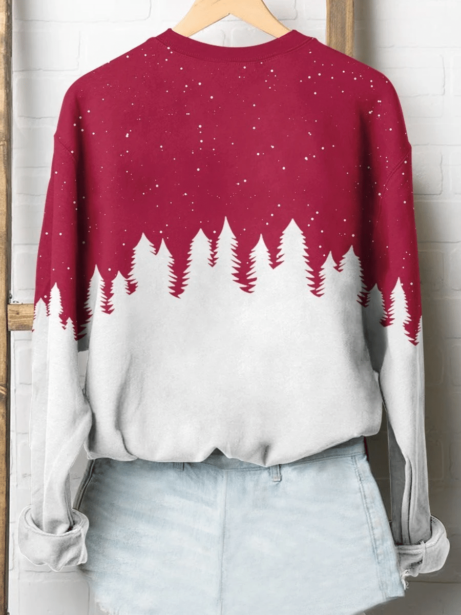 Santa And Reindeer Merry Christmas Print Long Sleeve Sweatshirt