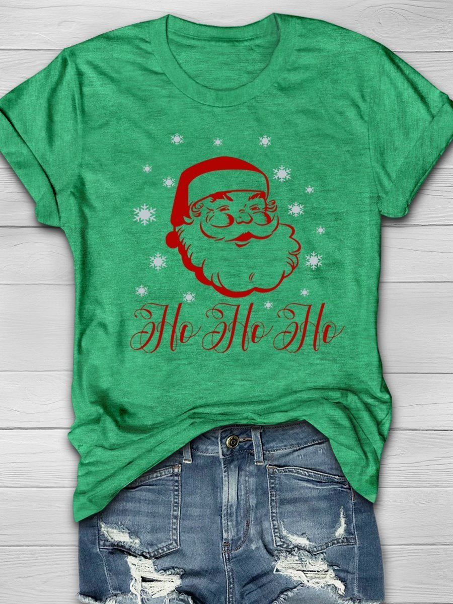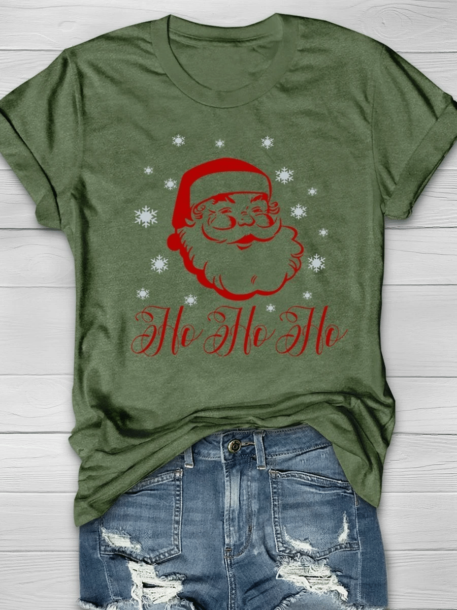 Santa Christmas Ho Ho Ho Print Short Sleeve T-Shirt
