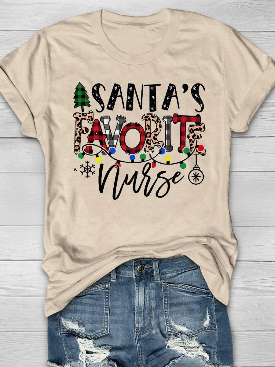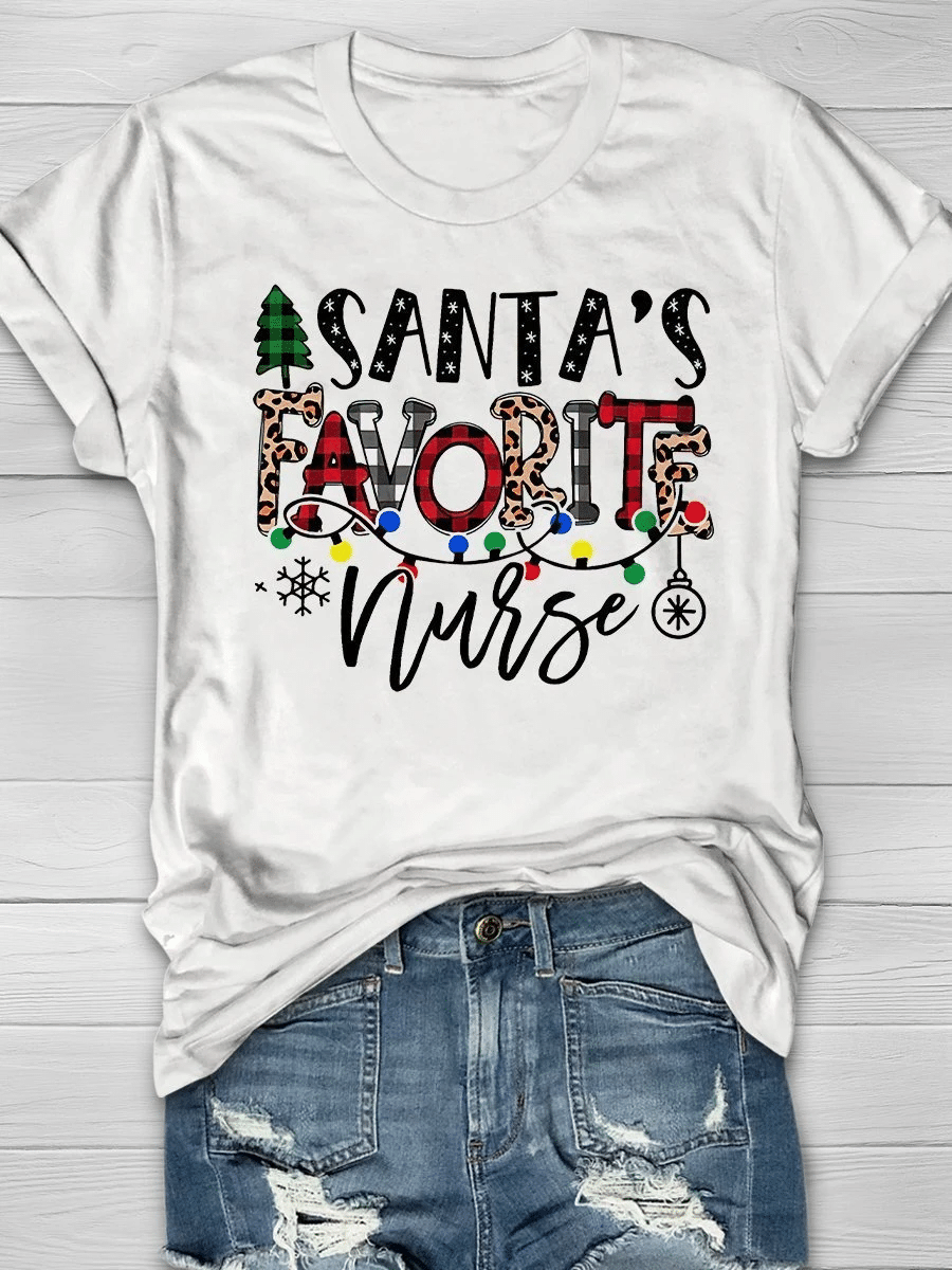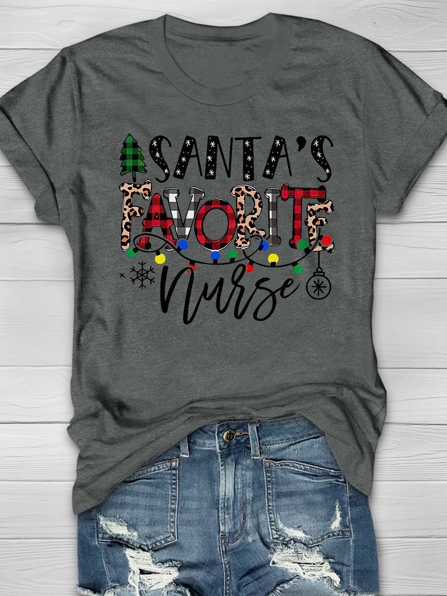 Santa’S Favorite Nurse Christmas Print Short Sleeve T-Shirt