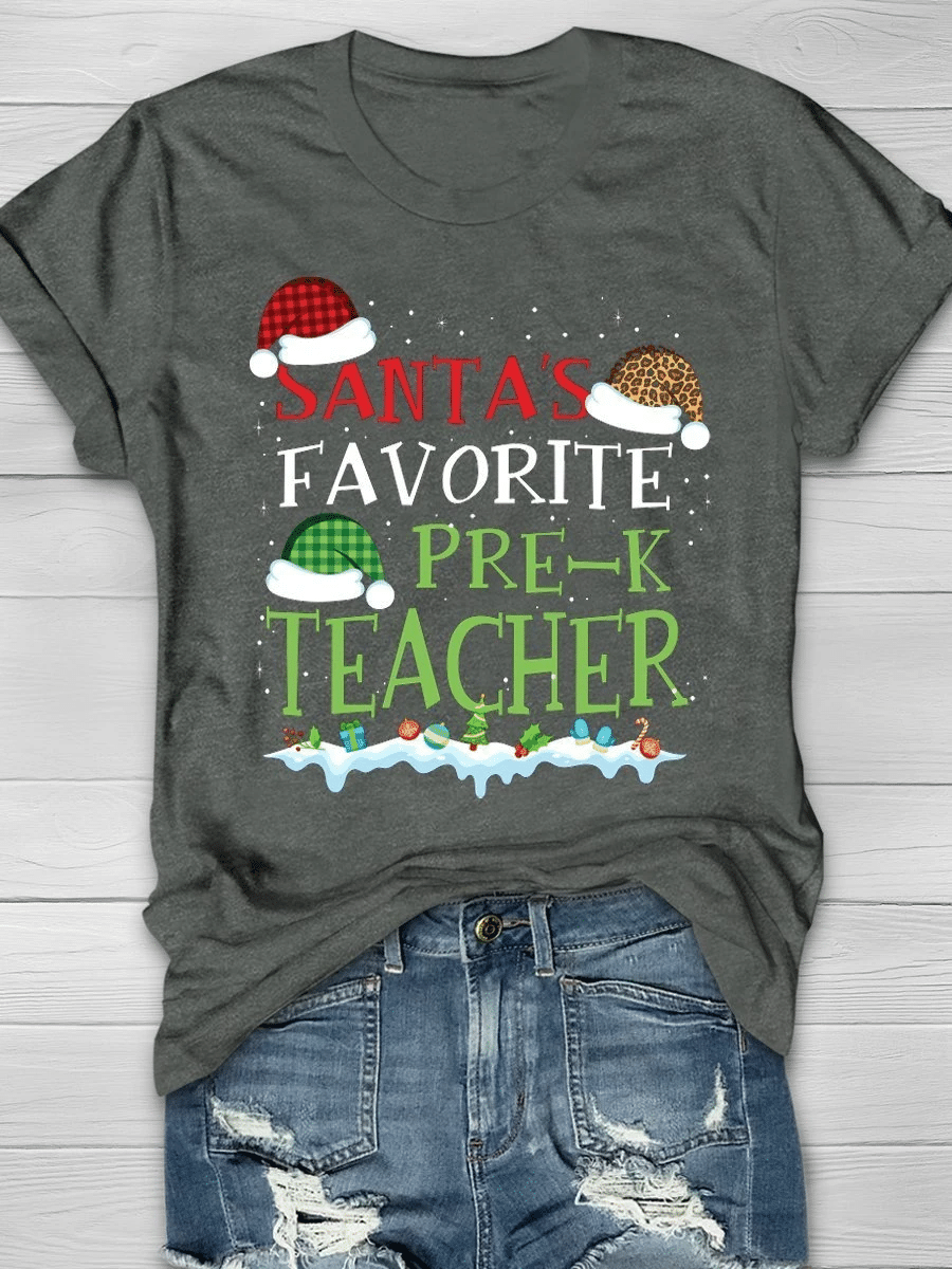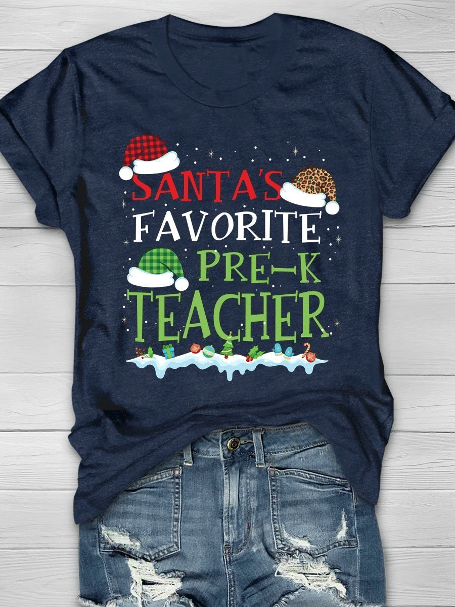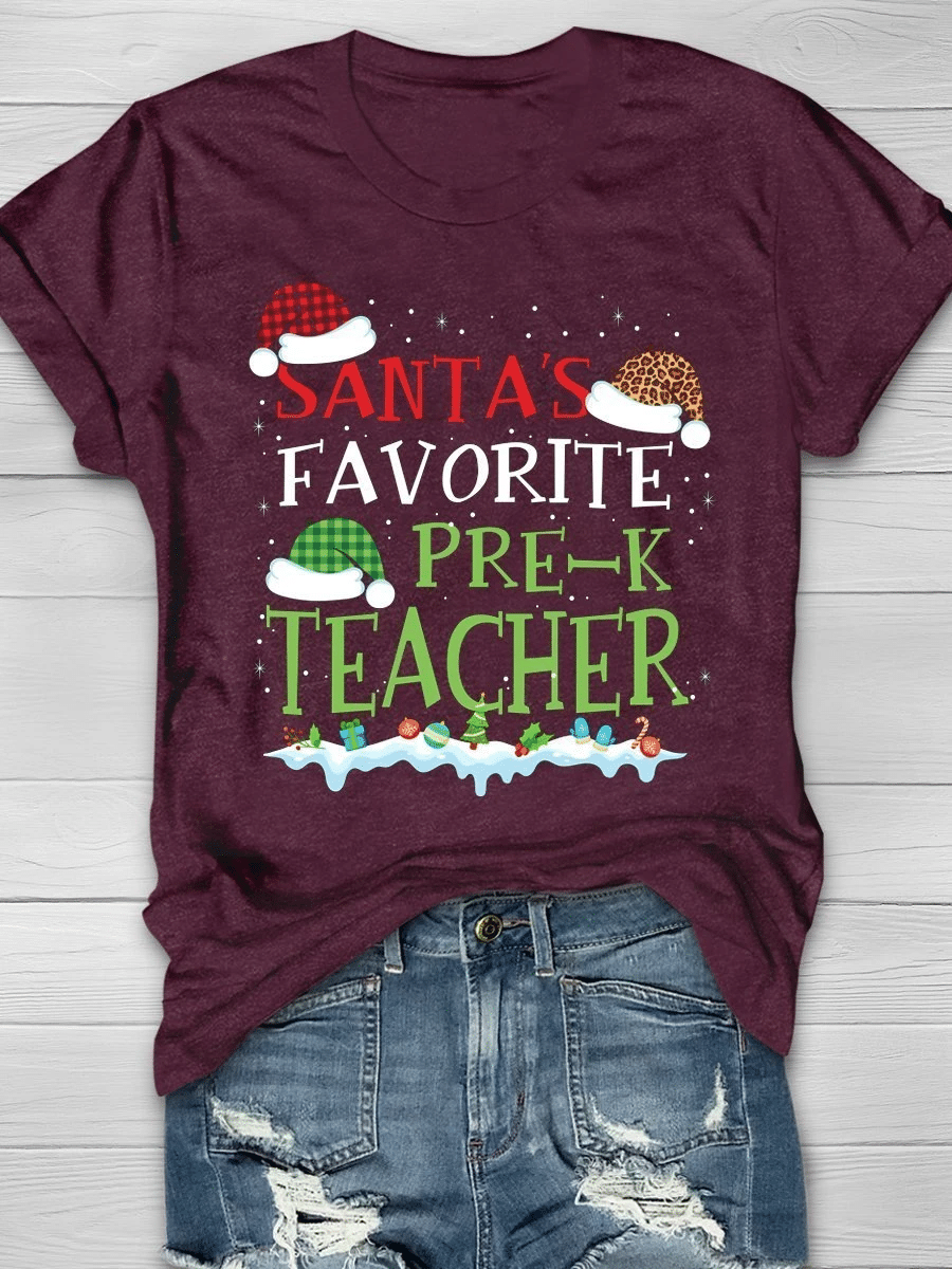 Santa’S Favorite Pre-K Teacher Print Short Sleeve T-Shirt
