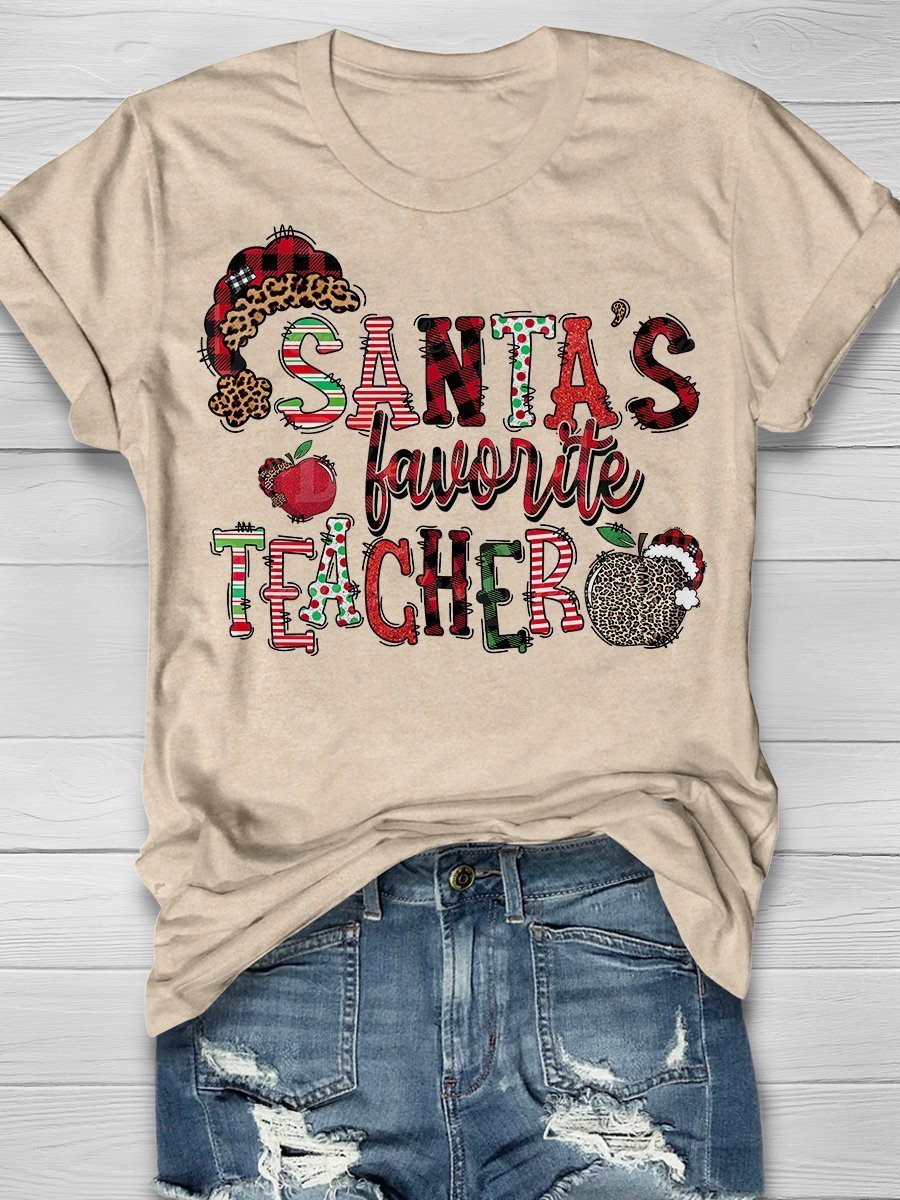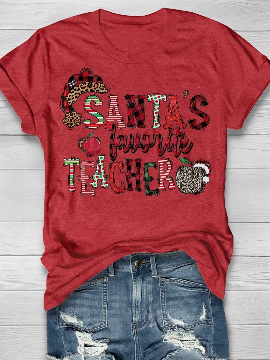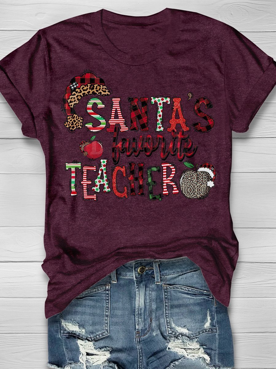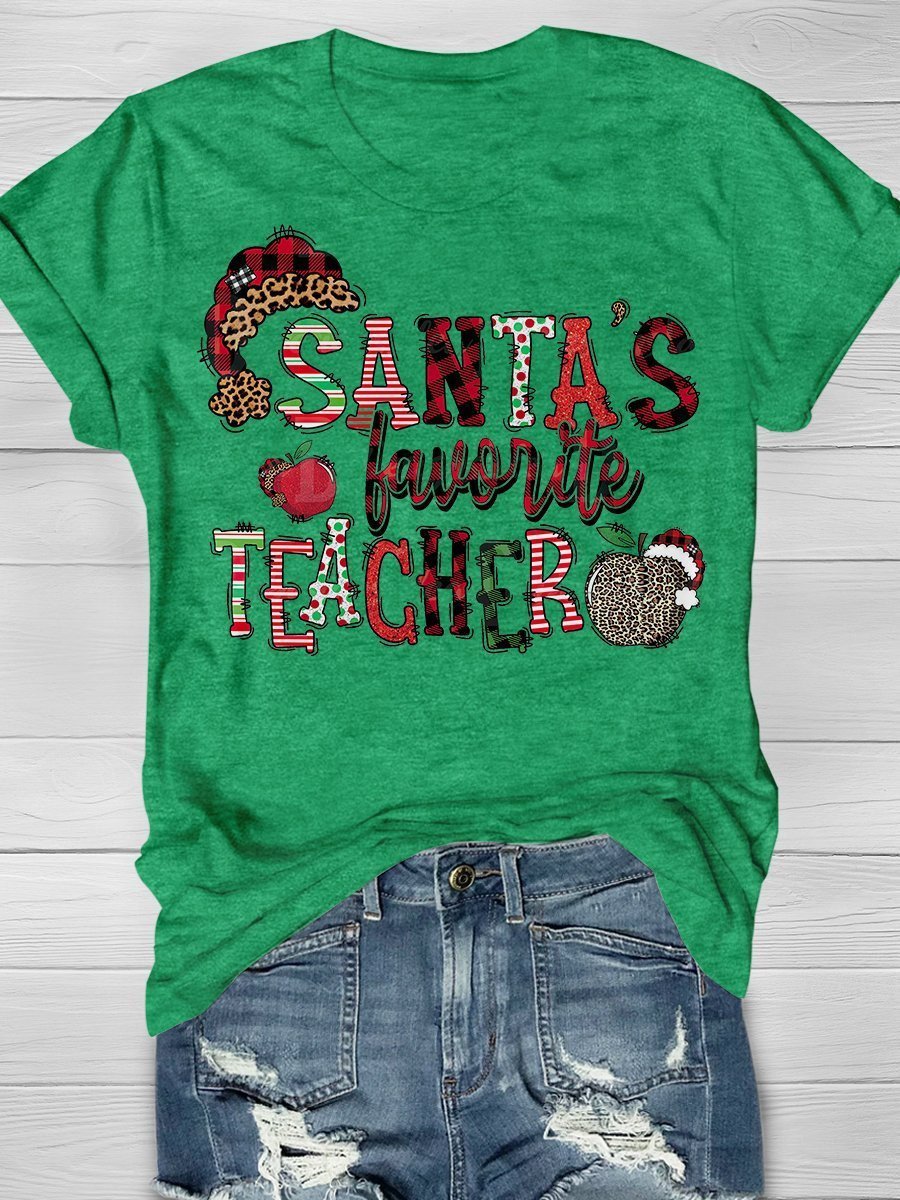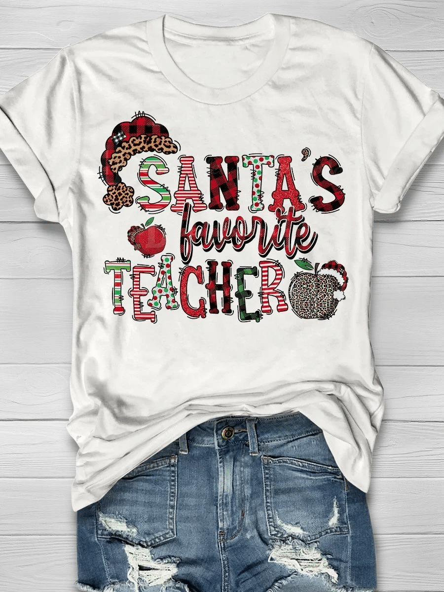 Santa’S Favorite Teacher Print Short Sleeve T-Shirt