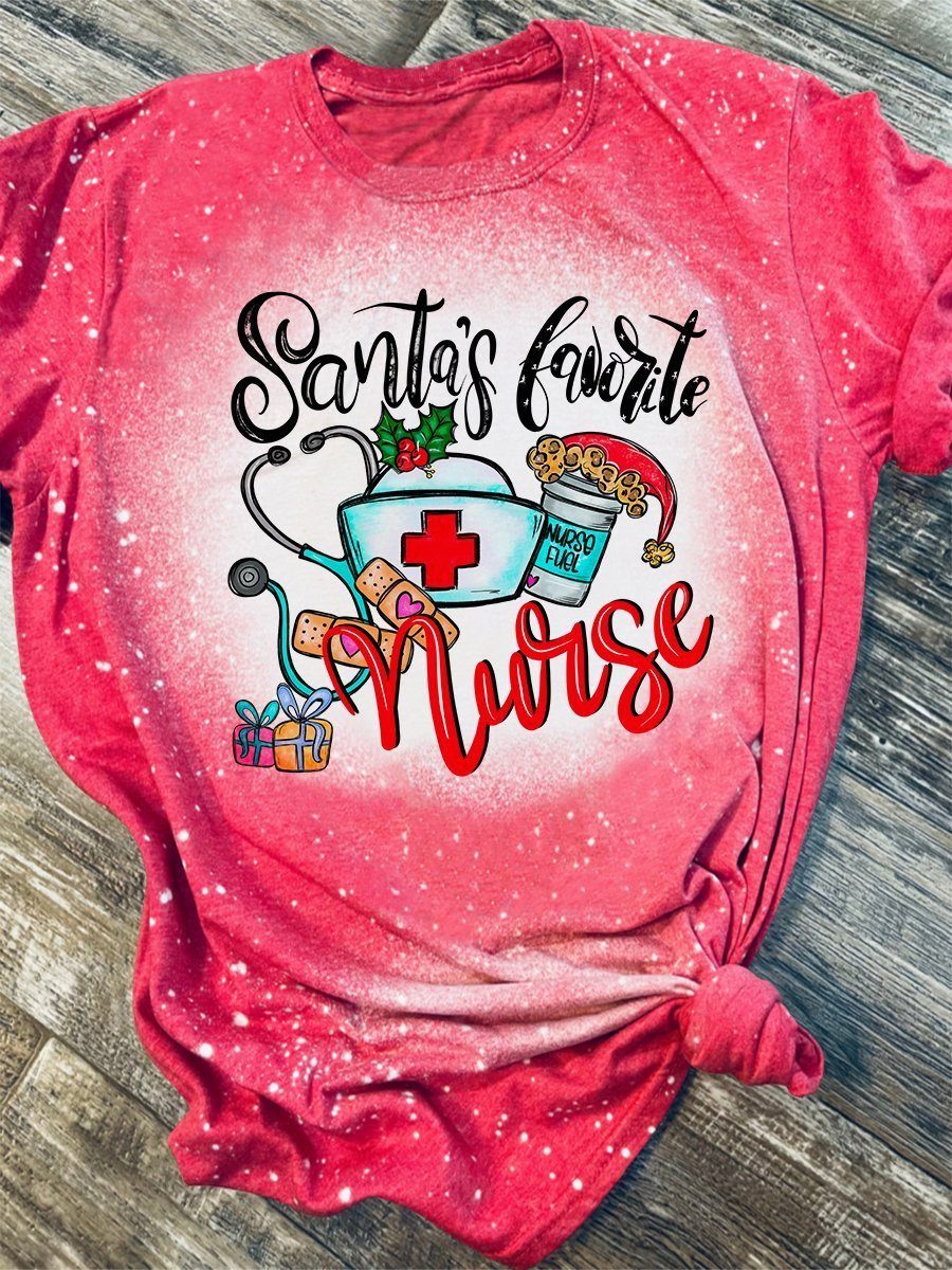 Santa’S Favourite Nurse Print Short Sleeve T-Shirt