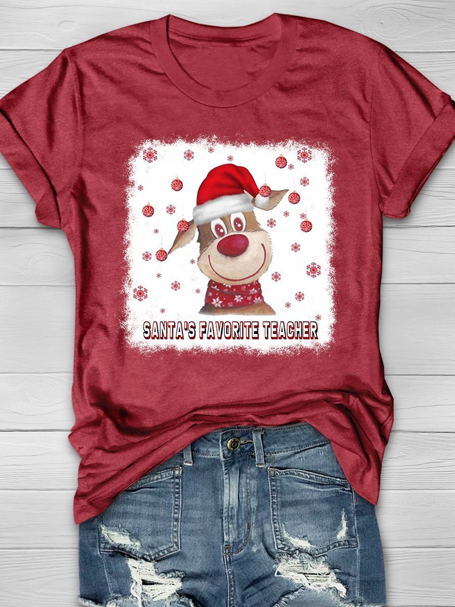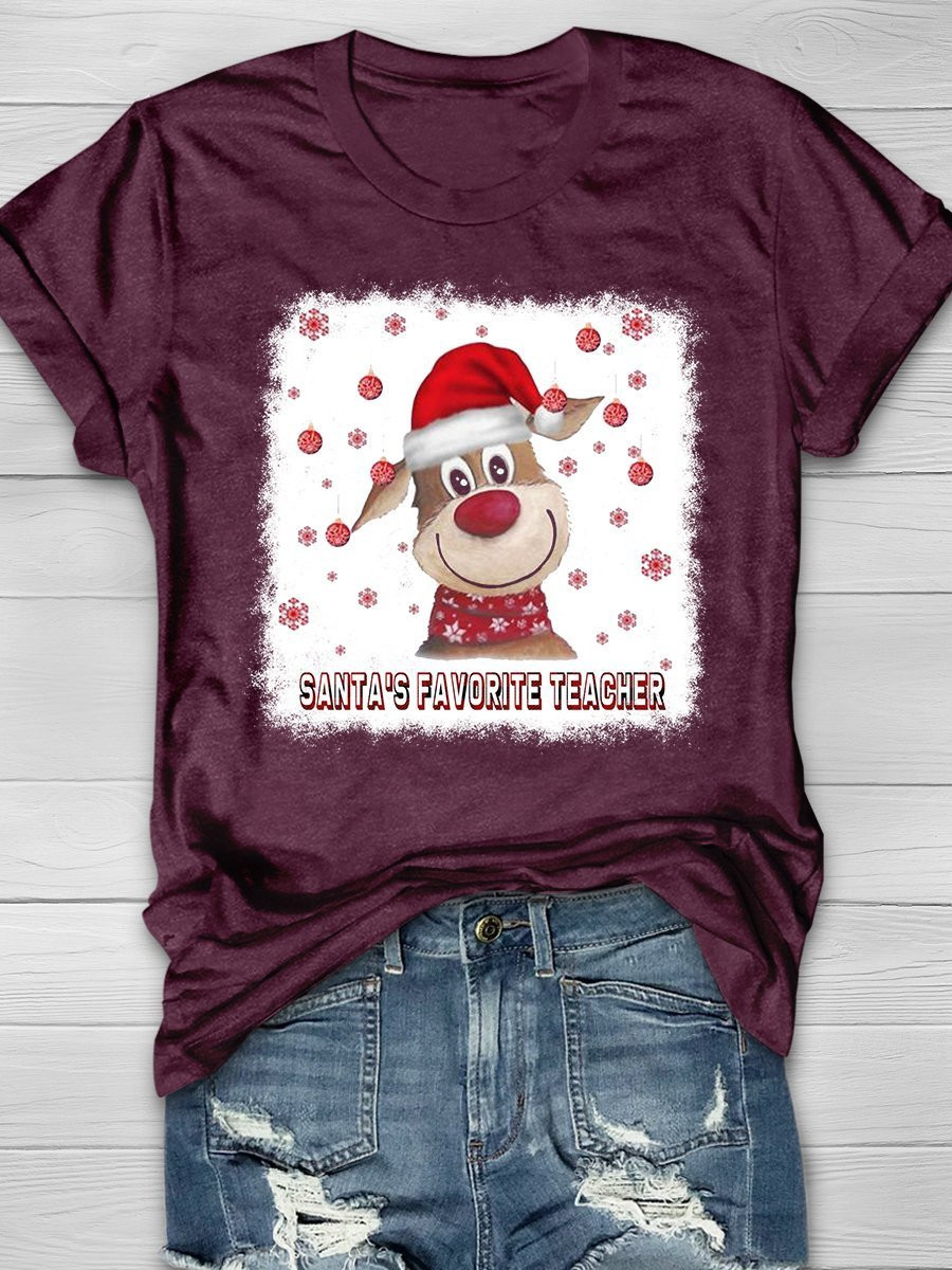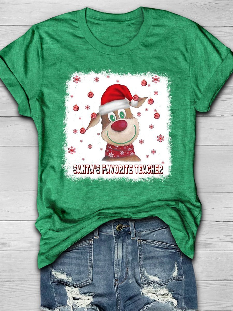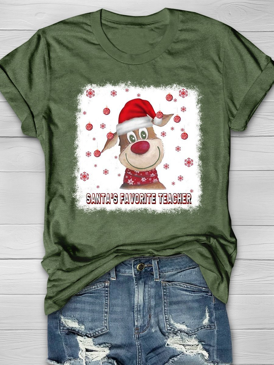 Santa’S Favourite Teacher Christmas Print Short Sleeve T-Shirt