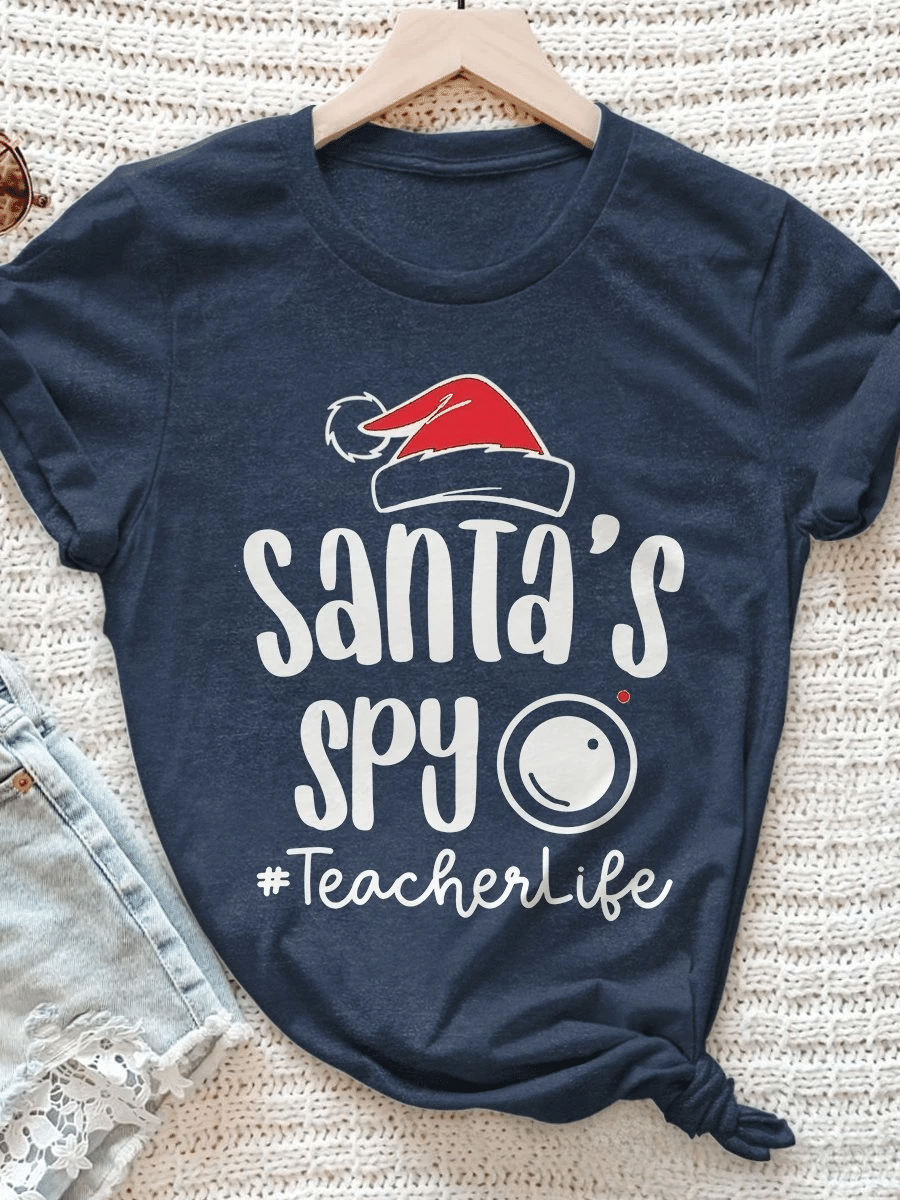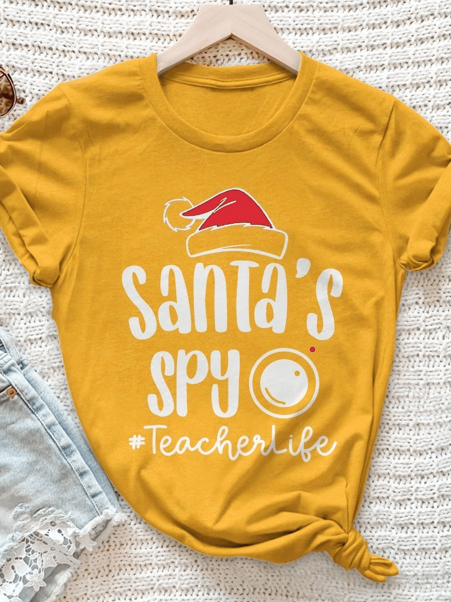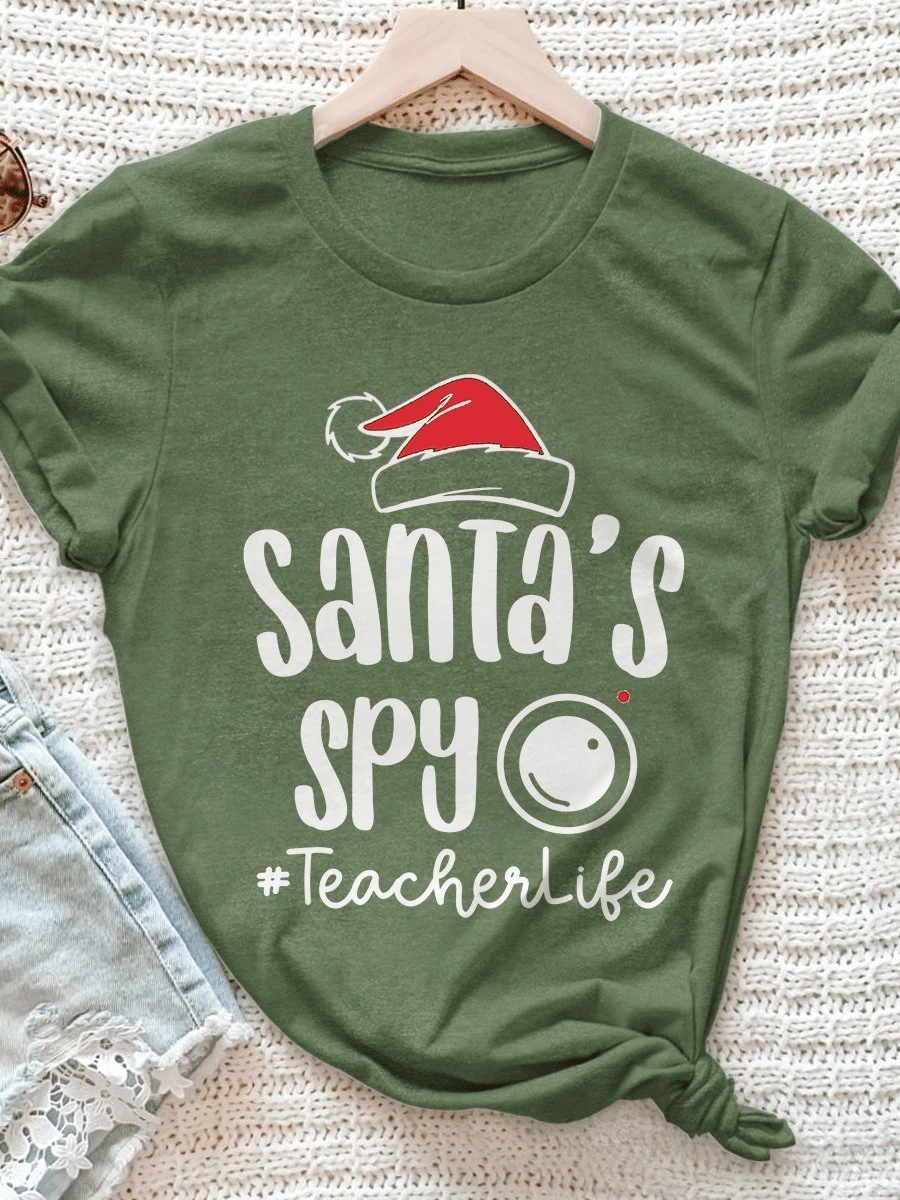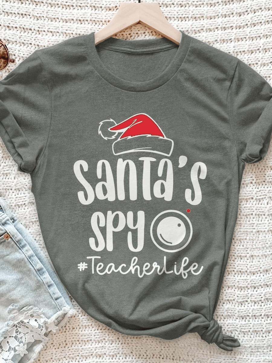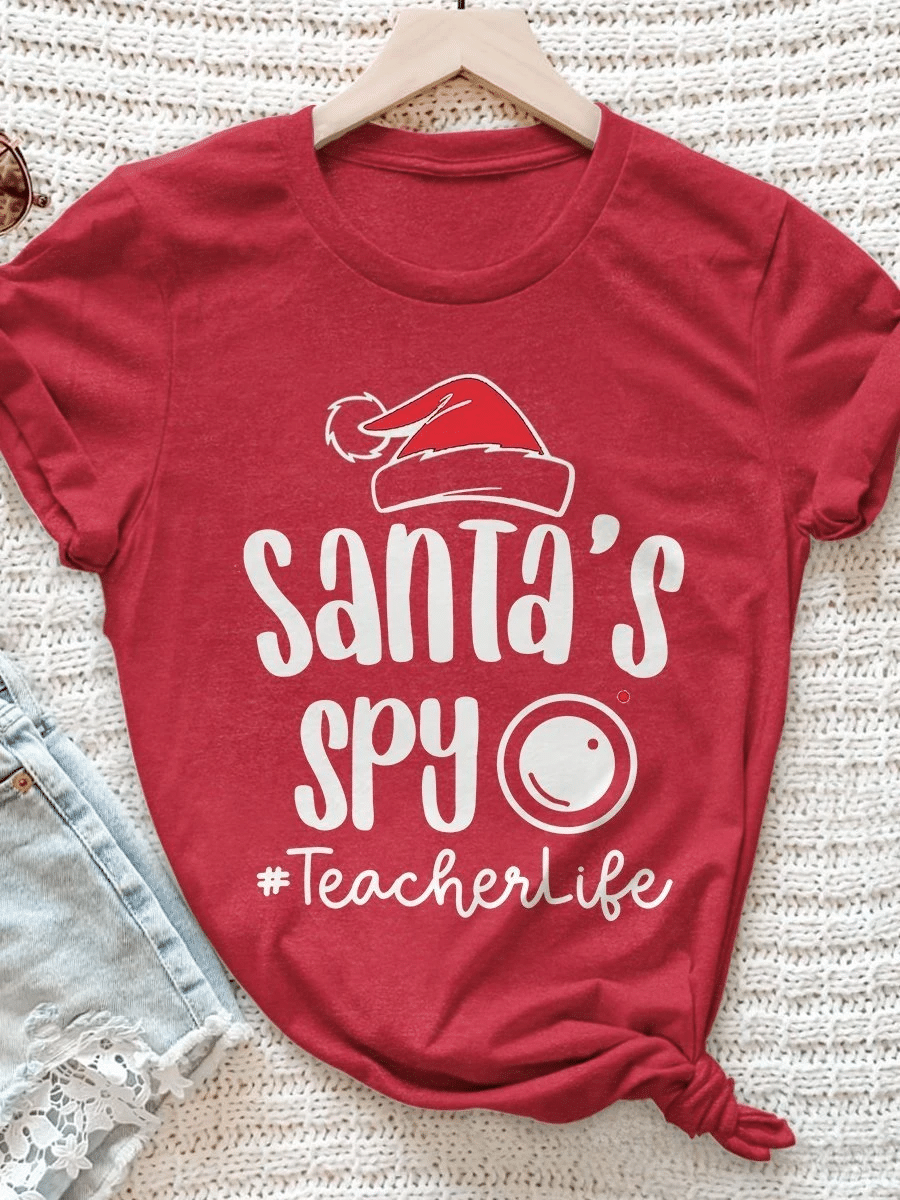 Santa’S Spy Teacherlife Print Short Sleeve T-Shirt