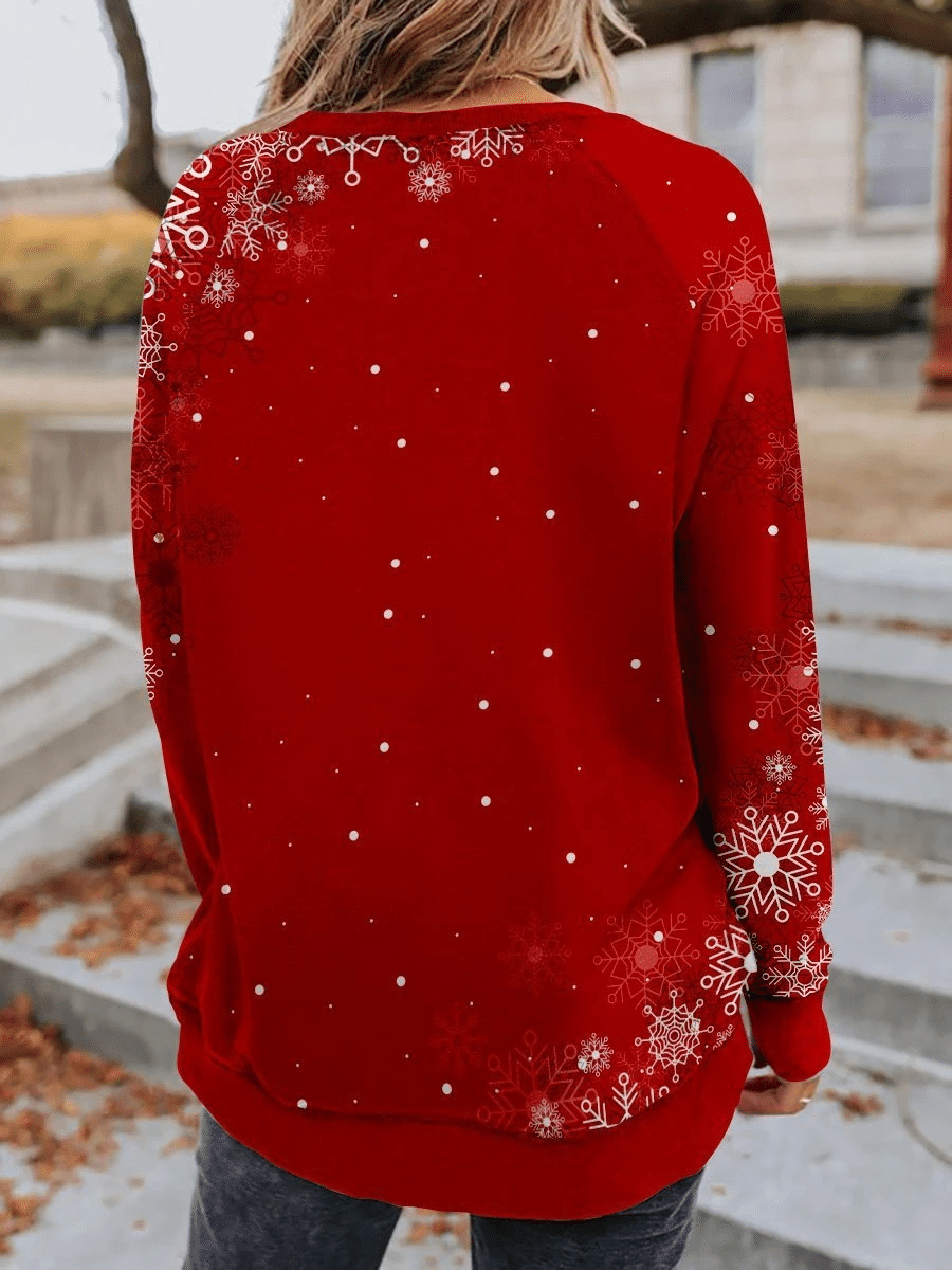 Snowflake Noel Snowy Christmas Print Long Sleeve Sweatshirt