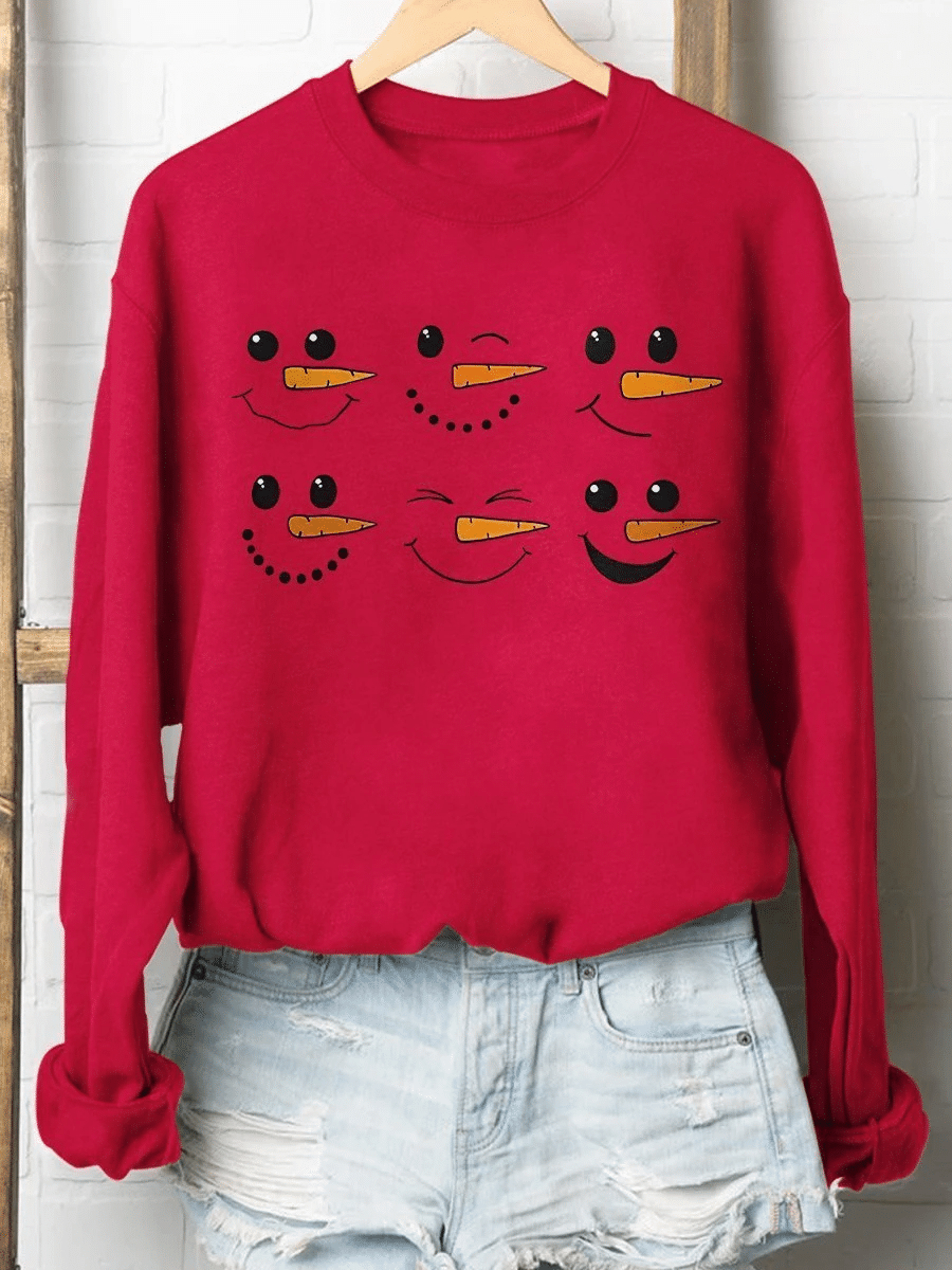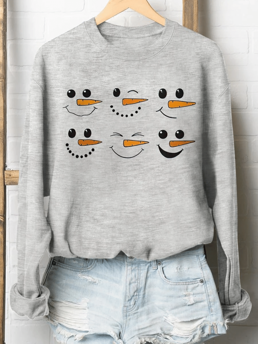 Snowman Doodles Merry Christmas Print Long Sleeve Sweatshirt