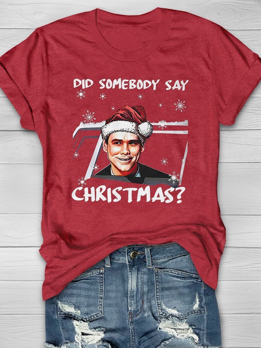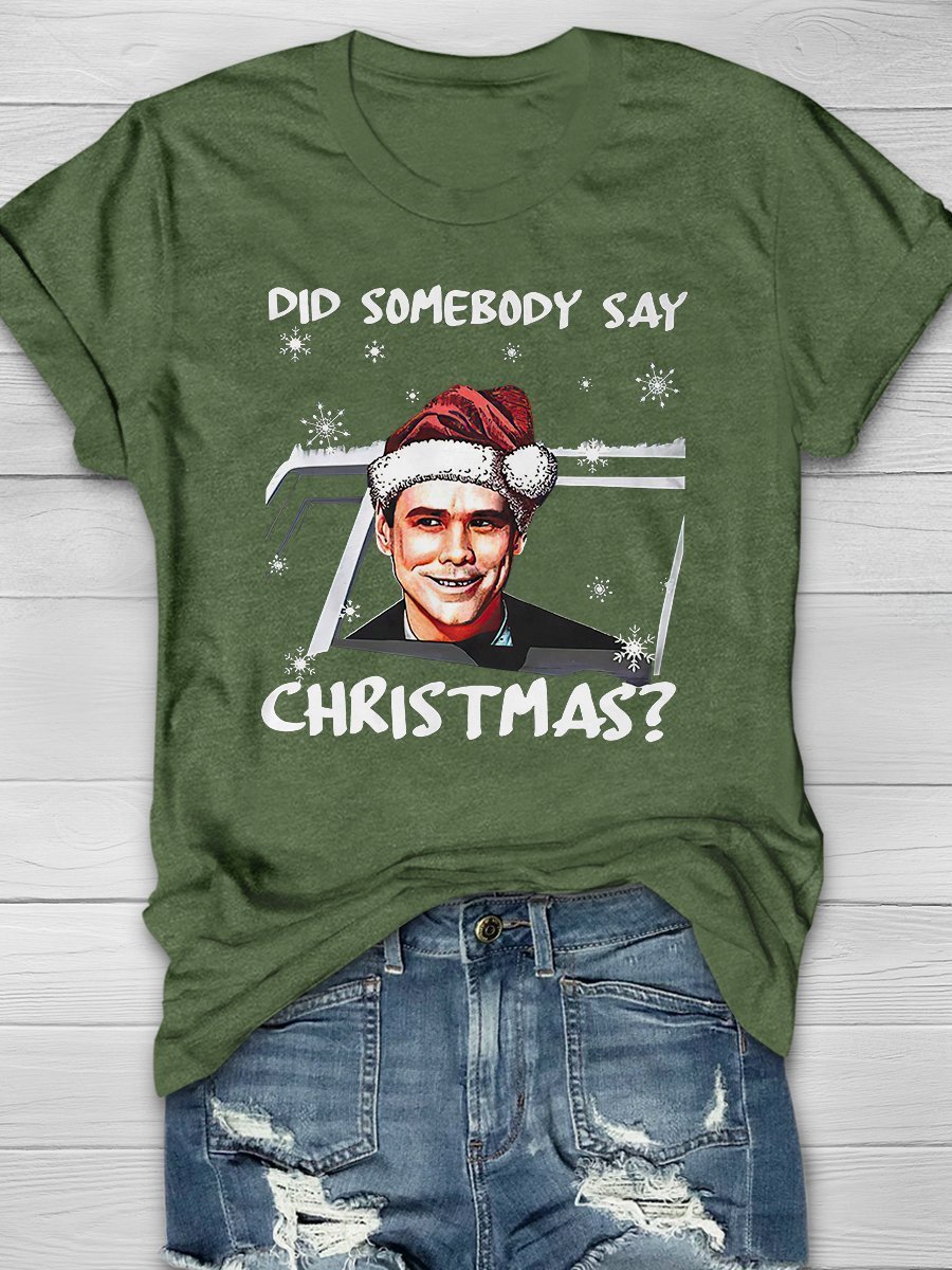 Somebody Say Christmas Print Short Sleeve T-Shirt