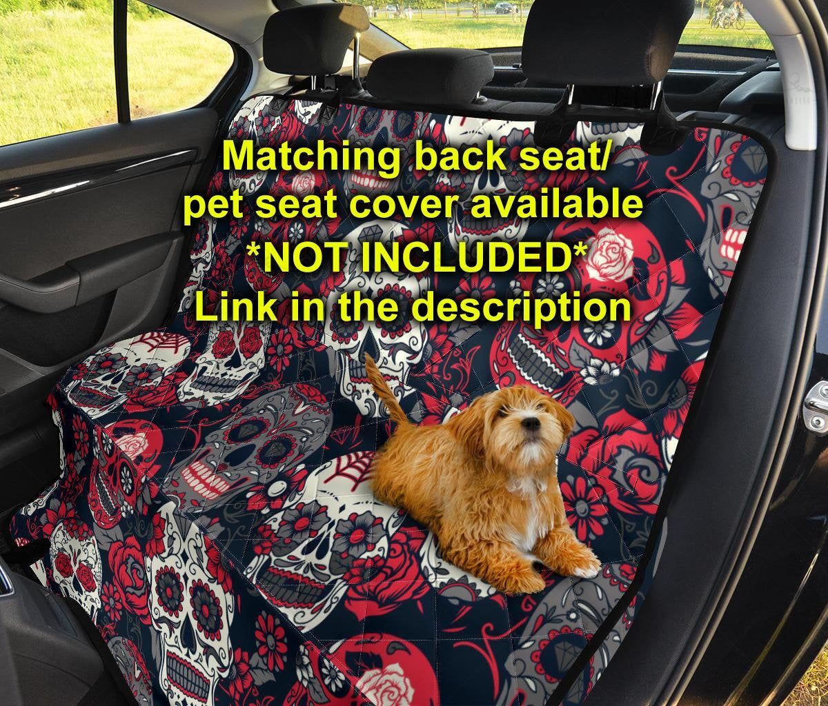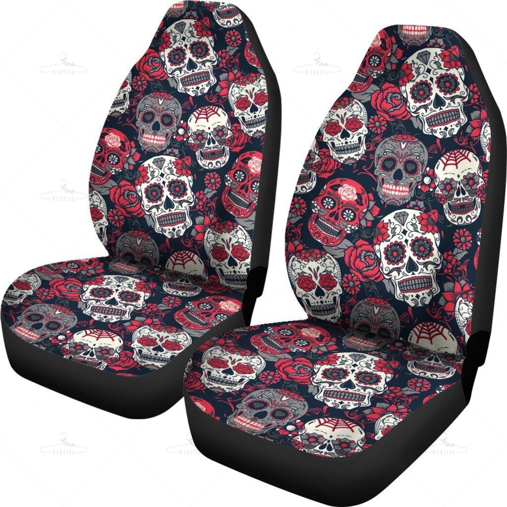 Sugar Skulls Roses Car Seat Covers Pair, 2 Front Car Seat Covers, Seat Cover For Car, Car Seat Protector, Car Accessory, Dark, Skulls, Roses