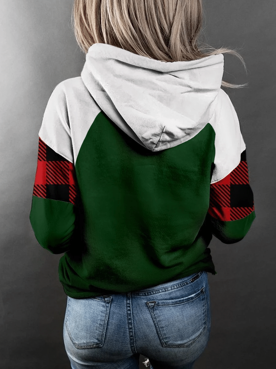 Teacher Christmas Love Color Block Print Long Sleeve Hoodie