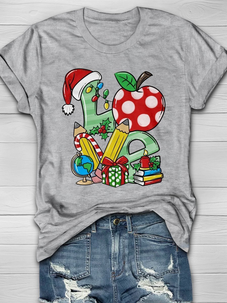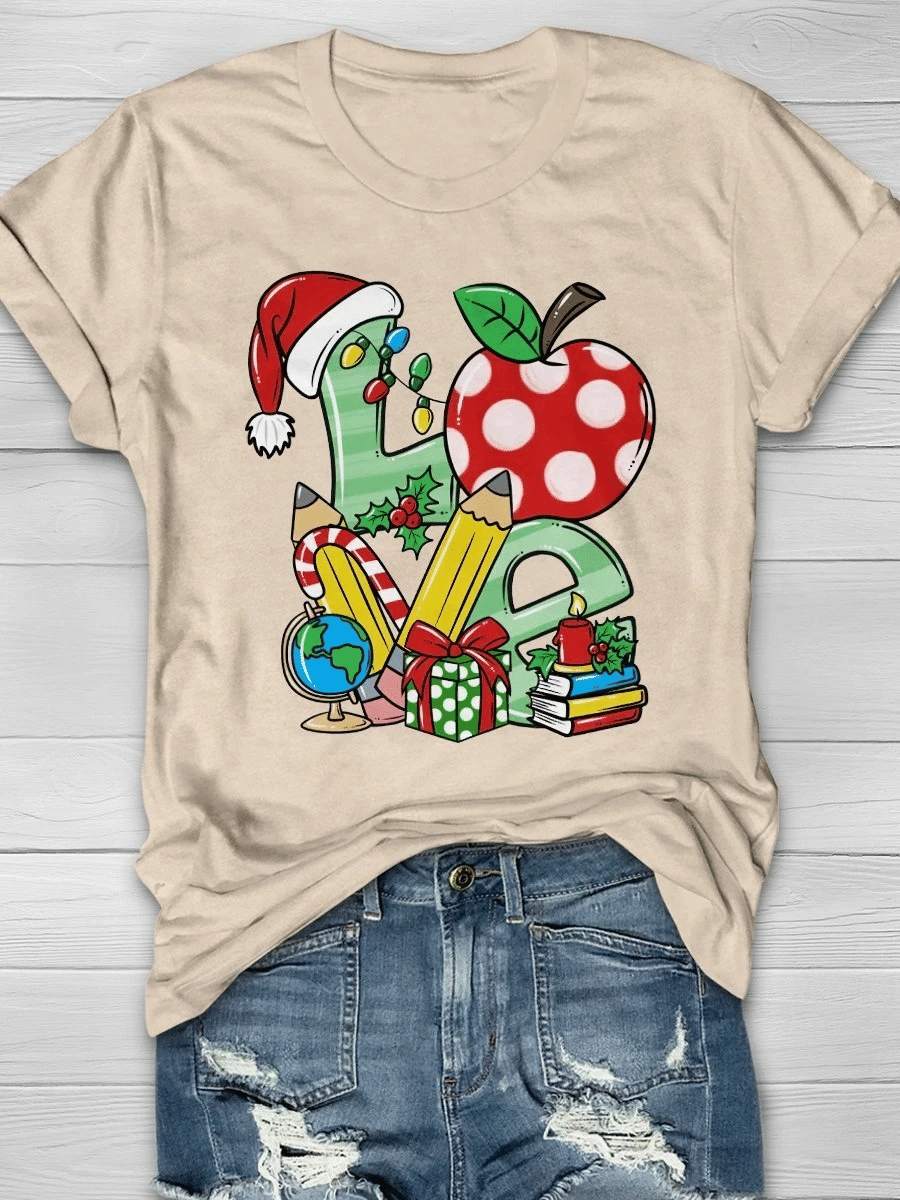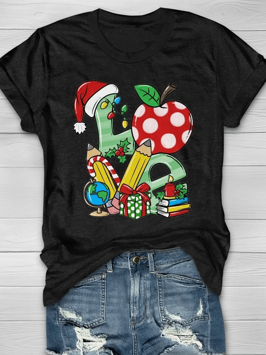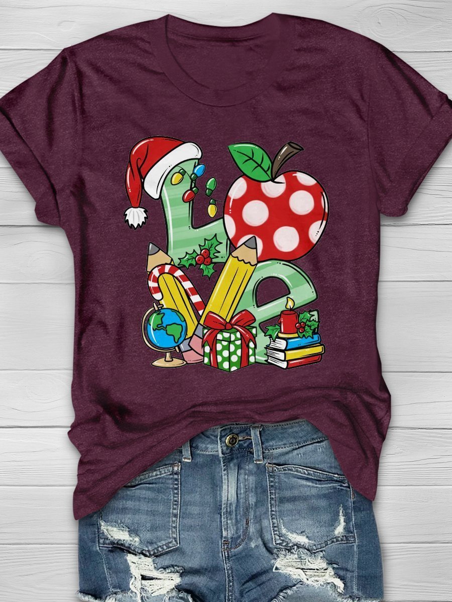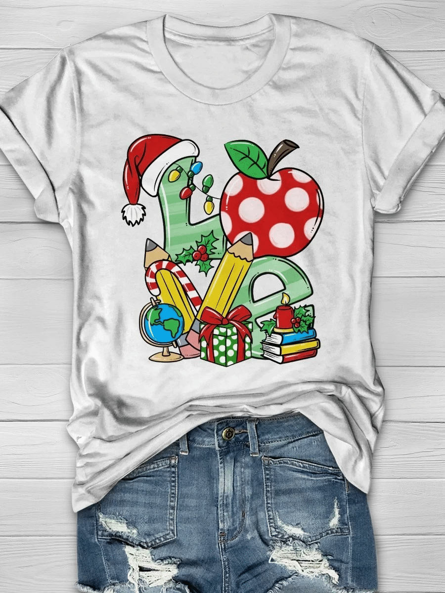 Teacher Christmas Love Print Short Sleeve T-Shirt