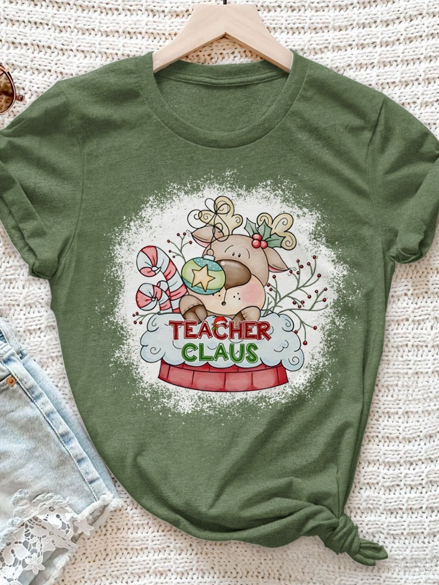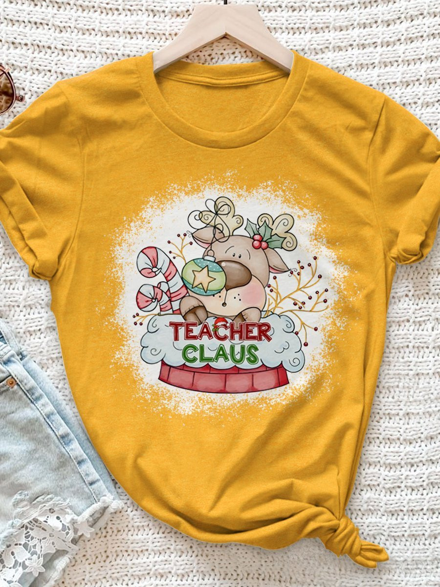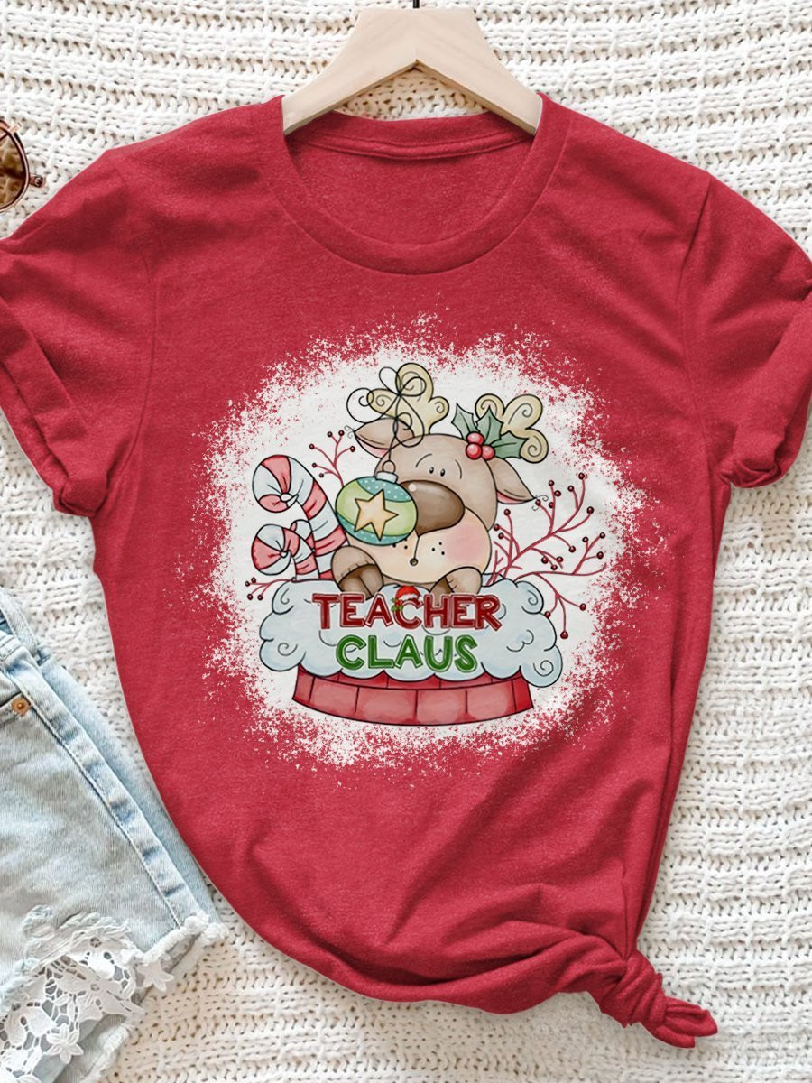 Teacher Claus Print Short Sleeve T-Shirt