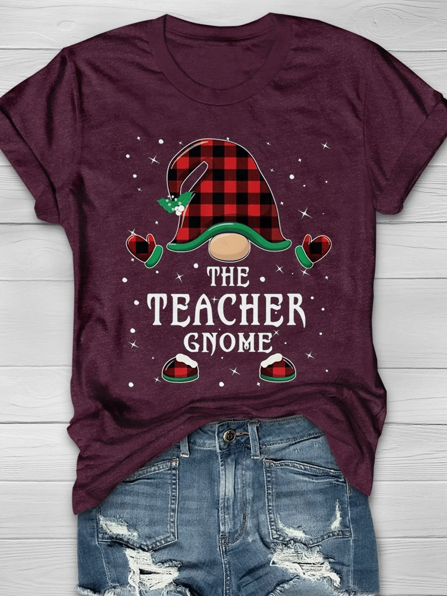 The Teacher Gnome Print Short Sleeve T-Shirt