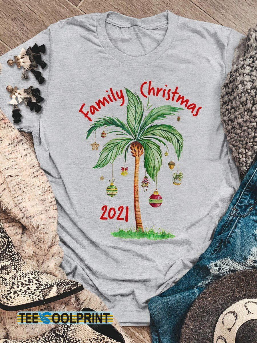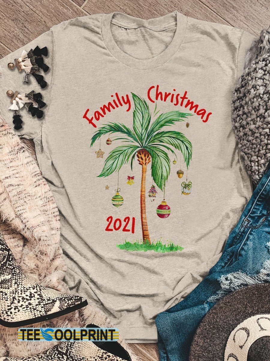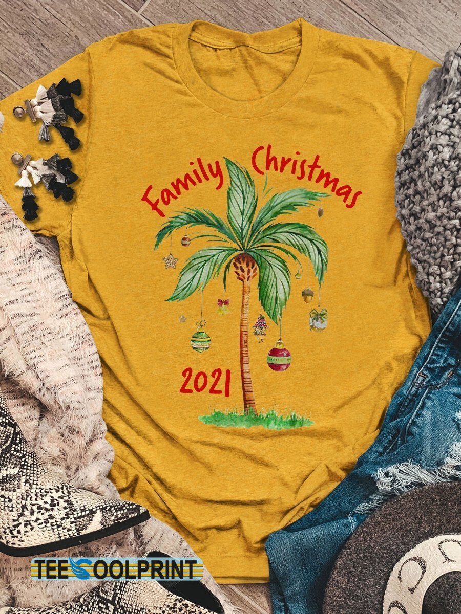 Tropical Family Christmas On The Beach Print Short Sleeve T-Shirt