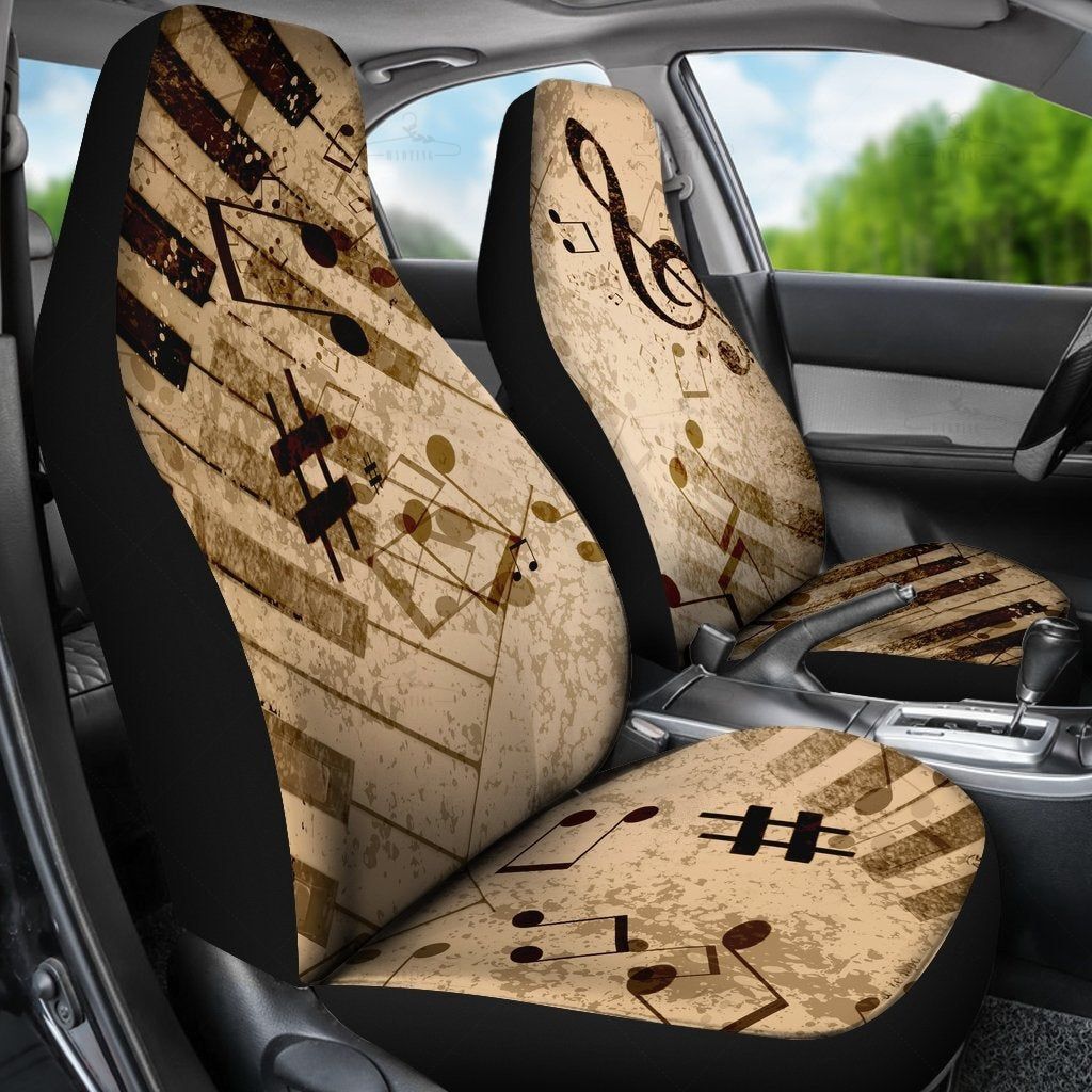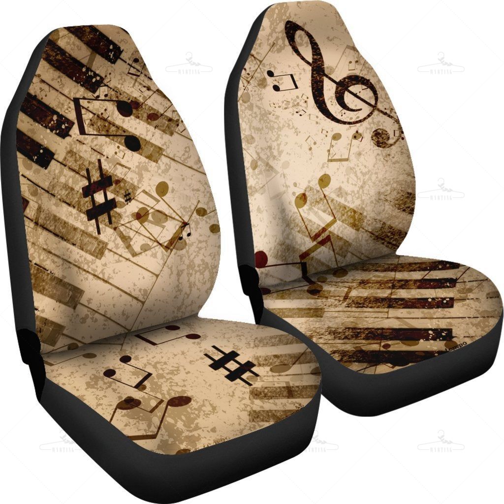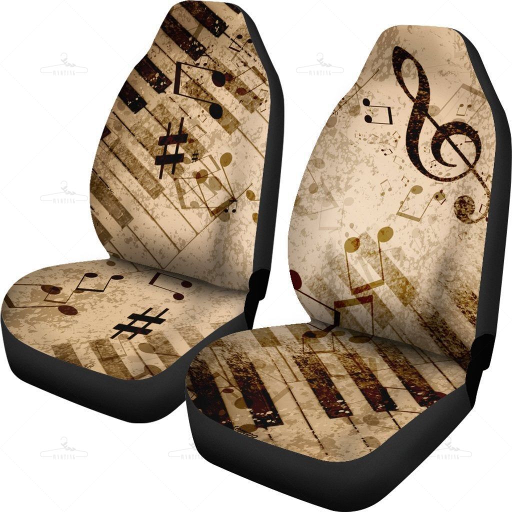 Vintage Piano Musical Notes Car Seat Covers Pair, 2 Front Seat Covers, Car Seat Covers, Car Seat Protector, Car Accessory, Brown, Tan